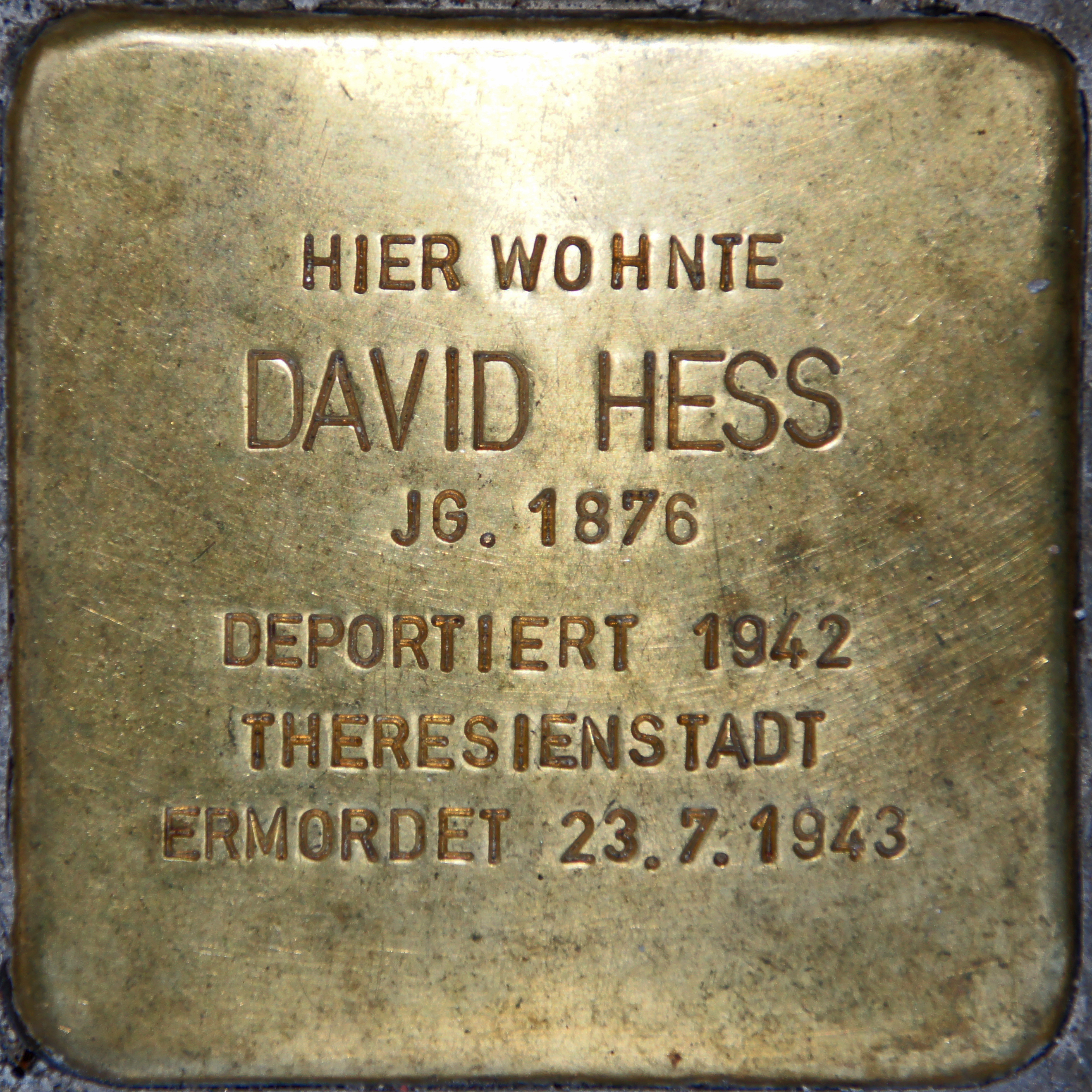 | David Hess stammte aus Papenburg, wo er am 06. Oktober 1876 geboren wurde. Er war der Sohn von Moses Jakob Hess und Bertha Hess, geb. Rosenbaum, die sich in Bunde niederließen. Zu den Geschwistern Davids gehörten unter anderem Friederike Hess, die Moritz Lachmann heiratete und mit diesem gemeinsam 1942 in Lodz ermordet wurde, der Schlachter Jacob Moses Hess, der mit seiner Frau Frieda, geborene Oljenick, am 21. September 1942 in Treblinka ermordet wurde, sowie der Kaufmann Joseph Hess, dem im März 1939 mit seiner Frau Rosel, geborene Rothschild, und der Tochter Else-Inge die Flucht nach Buenos Aires gelang. David Hess ist von Beruf Viehhändler bzw. Schlachter. Am 11.08.1922 heiratet er in Neunkirchen/Saar Caroline Meyer (geboren 10.09.1885). Das Paar zieht nach der Eheschließung nach Bunde und bekommt zwei Kinder: Davids Tochter, Hertha Johanna, kommt am 01. Januar 1924 zur Welt. Fünf Jahre später, am 29. Januar 1929, wird der Sohn Max geboren. Vermutlich, da nach der Machtübernahme durch die Nationalsozialisten die Situation in Bunde immer schwieriger wird und die jüdischen Einwohner immer stärker unter Boykottaktionen und Repressalien leiden, zieht die Familie wie viele andere aus Bunde fort, um in einer anderen Stadt Arbeit oder Unterstützung durch Verwandte zu finden. David Hess hat scheinbar eine Anstellung in Aurich erhalten und meldet sich und seine Familie am 27. Juni 1934 dort an. Die Familie zieht in das Haus Wallstraße 56. In Aurich leben zudem zwei Geschwister Davids, nämlich der Kaufmann Joseph Hess, der am Markt Nr. 15 lebt, sowie seine Schwester Friederike Lachmann, die mit dem Lehrer Moritz Lachmann verheiratet ist. Die Situation in Aurich scheint für die Familie dennoch nicht leicht gewesen zu sein, wovon die zahlreichen Umzüge der Familie künden: Schon dreizehn Monate nach ihrer Ankunft in Aurich ziehen David und seine Familie in die Von-Jhering-Straße 27 und von dort wiederum in die Wallstraße 2. Am 09. Dezember 1938 kommen die Hess´ wie mehrere andere jüdische Familien schließlich in der Julianenburger Straße 3 unter. Das Haus gehört der Witwe Rosa Wolff und ihrem Sohn Leo. Dies ist die letzte Adresse der Familie in Aurich, bevor sie aus der Stadt vertrieben wird. Spätestens im Herbst 1939 hat David Hess seine Anstellung verloren – auf der Liste der jüdischen Einwohner der Stadt wird er als „ohne Beruf“, also arbeitslos, geführt. In der schwierigen Lage verlässt zunächst die Tochter, Hertha Johanna, die Familie. Sie wird bereits am 14. Juli 1939 nach Hannover geschickt, wo sie im Haus der Minna-James-Heineman-Stiftung untergebracht wird. Als David und Caroline Anfang des Jahres 1940 die Aufforderung erhalten, Aurich „aus sicherheitspolizeilichen Gründen“ zu verlassen, wird auch der Sohn Max von seinen Eltern getrennt: Um den Familien die Umsiedlung zu erleichtern, hat die jüdische Gemeinde die Möglichkeit eingerichtet, Kinder unter vierzehn Jahren übergangsweise in zwei jüdische Kinderheime in Köln bzw. Hildesheim zu schicken. Als David und Caroline Hess sich am 22. Februar 1940 nach Berlin abmelden, zieht Max daher nach Hildesheim in das Kinderheim „Am Lappenberg“. Es dauert wohl rund anderthalb Jahre, bis die Familie wieder vereint ist. Hertha Johanna kommt am 27.11.1941 nach Berlin und zieht möglicherweise zu den Eltern in die Rosenstraße 2-4. Spätestens im Frühjahr 1942 kehrt auch Max zu seinen Eltern zurück. Die Familie wird jedoch schon bald erneut getrennt: Am 21. August 1942 werden David, seine Frau Caroline und sein Sohn Max von Berlin aus nach Theresienstadt deportiert, wo sie in unterschiedlichen Gebäuden wohnen müssen. Hertha Johanna bleibt noch einige Monate in Berlin, bevor sie am 03. Februar 1943 direkt nach Auschwitz-Birkenau deportiert und dort keine drei Wochen später ermordet wird. Ob David vom Schicksal seiner Tochter erfuhr, bleibt ungewiss. Nur wenige Monate nach seiner Tochter stirbt auch David Hess. Infolge der unmenschlichen Bedingungen im Ghetto erliegt er am 23. Juli 1943 einer Darmentzündung. Insgesamt kamen wohl rund 33.400 Menschen durch Unterernährung, Mangelversorgung und damit einhergehenden Erkrankungen in Theresienstadt zu Tode. Auch die beiden verbliebenen Familienmitglieder, Caroline und Max, werden ermordet: Das letzte Lebenszeichen der Ehefrau und des Sohnes von David Hess ist deren Besteigen eines Transportes nach Auschwitz-Birkenau am 16. Mai 1944. |