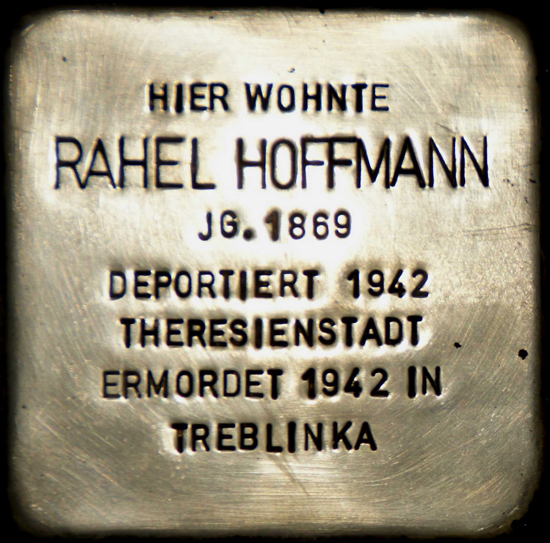 Mitte Februar 1940 sollten Scheintje und Rahel ihre Heimatstadt für immer verlassen. Als sie wenige Tage zuvor sich bei der Stadtverwaltung abmelden wollten, wurde ihnen ein Schreiben der Geheimen Staatspolizei vorgelegt, in dem u. a. steht: „Um den Juden die Räumung unseres Bezirks zu erleichtern, erscheint es zweckmäßig, dass die Juden auf die Möglichkeit des Verkaufes von Möbeln usw. hingewiesen werden. Die Verkaufsmöglichkeit ist weitgehend zu unterstützen…“ Da sie wussten, dass sie in Essen, Ladenpelderstraße 47, nur einen Raum bewohnen sollten, gelang es ihnen noch einen Teil ihrer Einrichtungsgegenstände zu verkaufen, bevor sie am 15. Februar 1940 Aurich für immer verließen. Aber auch in Essen sollten sie nicht lange bleiben. Nach der „Wannseekonferenz“ vom 20.1.1942 kamen sie zunächst in das „Vorzeigekonzentrationslager“ Theresienstadt, bevor sie nach Treblinka zur Vernichtung deportiert wurden. Kurz nach ihrer Ankunft sind sie mit großer Wahrscheinlichkeit getötet worden, weil sie nach Ansicht der selektierenden SS- Ärzte zur körperlichen Arbeit nicht mehr fähig waren. Nach dem Kriege hat sich die Erbengemeinschaft, bestehend aus sieben Personen des Geschwisterpaars, um Wiedergutmachung bemüht. In dem Urteil des Landgerichts Osnabrück vom 15.12.1955 heißt es dazu: „Der Anspruch auf Rückerstattung ist gerechtfertigt. Die Verkäuferinnen gehörten als Juden zu einem Personenkreis, den in seiner Gesamtheit die nationalsozialistische Regierung aus Gründen der Rasse vom kulturellen und wirtschaftlichen Leben auszuschließen beabsichtigte.“ Am 23. März 1956 kauft Fritz Fangmann das Geschäftshaus Norderstraße 28 von der Erbengemeinschaft der Geschwister Hoffmann..
