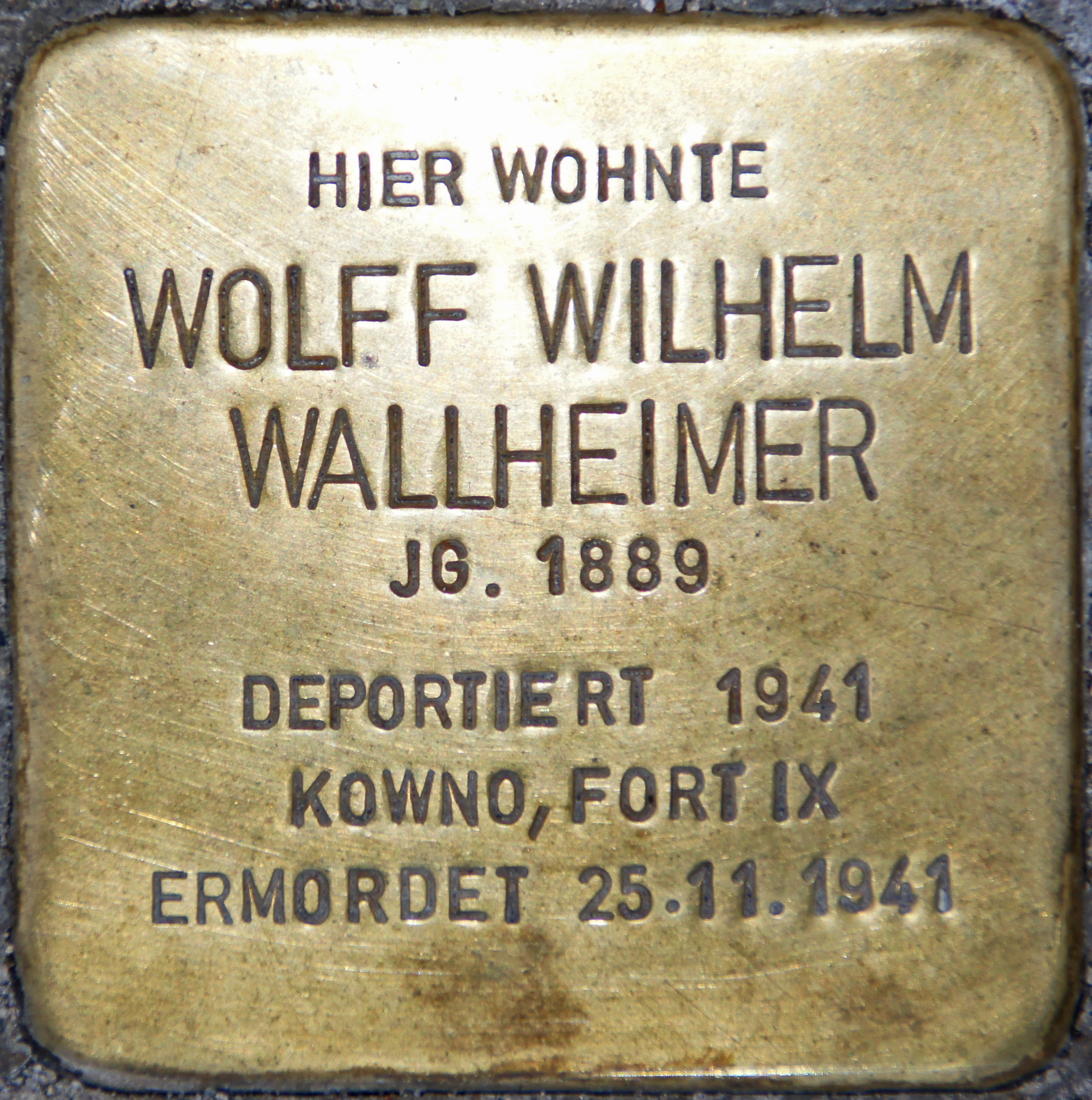 Wilhelm Wallheimer ist das fünfte Kind von insgesamt sieben der Eltern Abraham Levy und Bertha, geborene Hahn. Die Eltern und die Kinder wachsen im Haus Kirchdorfer Weg 36 auf. Dort wohnt zusätzlich die Familie Abraham Wolff Wallheimer. Abraham Wolff und Abraham Levy sind Vetter. Wilhelm ist Schlachter. Er verarbeitet das von seinem Bruder Simon gekaufte Vieh im Geschäft seines Vaters und seines Bruders Levy, welche in der Wallstraße 56 eine Metzgerei betreiben. Wilhelm, ledig bleibend, wohnt mit seinen Geschwistern, bis auf Levy, der eine eigene Familie hat, in diesem Haus. Die Mutter, Witwe Bertha, wohnt bis zum Tod ebenfalls dort. In der Nacht vom 9. auf den 10. November 1938 dringen SA-Horden in das Haus, demolieren Inneneinrichtung und Fenster. Die Geschwister beschließen auszuwandern. Die Besitzer, die Schwestern Karoline und Rosa, verkaufen am 12.12.1938. Die Geschwister warten auf die Papiere für die Auswanderung nach Amerika. Aber nur Levy mit Familie gelingt die Ausreise über Antwerpen nach New York. Simon, seine Schwestern und Bruder Simon müssen am 29.02.1940 im Zuge der angeordneten Judenräumung des Grenzgebietes Aurich verlassen. Sie kommen an verschiedenen Wohnplätzen in Berlin unter. Zuletzt in der Hohenstaufen Straße 8, unter, welche ihnen die jüdische Sozialverwaltung zuweist. Am 17.11.1941, es ist der allererste Transport von Berlin, wird Wilhelm zusammen mit allen Geschwistern nach Kowno (Kauen) in Litauen deportiert. Der Transport umfasst 1.006 Personen, von denen fast keiner überlebt. Nach Ankunft werden alle Geschwister am 25.11.1941 an offene Gruben beim Fort IX geführt und dort erschossen. |