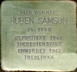 Amalia Samson wird bis 1933 im Haushalt von Hausmädchen unterstützt, danach findet das Ehepaar aber offensichtlich keine Haushaltshilfen mehr, denn ab 1935 dürfen jüdische Familien nicht länger „arische“ Frauen unter 45 Jahren als Hausmädchen einstellen. Amalia verstirbt bereits am 15. Oktober 1933 im Alter von 60 Jahren an Herzschwäche. Von diesem Zeitpunkt an wird das Leben für Ruben wohl auch finanziell schwieriger, da alle jüdischen Geschäftsleute unter den Boykottaktionen der Nationalsozialisten leiden. Bis in den Juli 1937 führt Ruben jedoch seinen Betrieb im Breiten Weg 21 fort, anschließend verkauft der den Schlachthof und zieht zu seinen Brüdern Bendit und Herz, die gemeinsam in der Zingelstraße 3 wohnen. Bis zu ihrer Abmeldung aus Aurich leben die drei Brüder gemeinsam in dem Haus, das auf Bendit Samson eingetragen ist. Den Haushalt der drei älteren Herren führt das Hausmädchen Gesine Peters. Da Ostfriesland „judenfrei“ werden sollte, erhalten Ruben und seine Brüder im Frühjahr 1940 die Aufforderung, Aurich zu verlassen. Abraham, der jüngste Bruder, hatte sich mit seiner Frau Hedwig in Dortmund niedergelassen, vermutlich, weil ihre Tochter Emmi seit ihrer Heirat mit Siegfried Stern dort lebte. Am 08. März 1940 verlässt Ruben gemeinsam mit Herz Aurich und zieht ebenfalls nach Dortmund. Sein Bruder Bendit hatte Aurich bereits vier Tage zuvor verlassen und sich wie Ruben und Herz in der Museumstrasse 5 in Dortmund angemeldet. Für Ruben ist in Dortmund als Adresse schließlich auch der Ostenhellweg 41 eingetragen. Unklar ist, ob alle drei Brüder letztendlich dort wohnten. Abraham und seine Frau zumindest waren unter einer anderen Adresse gemeldet: Sie wohnten in der Saarlandstraße 71. Am 29. Juli 1942 werden die Gebrüder Samson sowie Abrahams Frau Hedwig gemeinsam von Dortmund nach Theresienstadt deportiert. Der Aufenthalt in Theresienstadt ist für Ruben nur von kurzer Dauer: Bereits am 23. September 1942 wird er zusammen mit seinem Bruder Herz in das Vernichtungslager Treblinka deportiert, wo sich die Spur beider Männer verliert. Von den 1985 Menschen, die mit ihrem Zug nach Treblinka gebracht werden, überlebt kein einziger. Bendit, der älteste Bruder, wird ebenfalls in Treblinka ermordet. Er wird nur drei Tage nach seinen Brüdern dorthin verbracht. Abraham, der jüngste Bruder, wird am 28. Oktober 1944 mit seiner Frau Hedwig nach Auschwitz deportiert und dort umgebracht. Auch die Söhne Rubens und deren Ehefrauen fallen dem Völkermord durch die Nationalsozialisten zum Opfer: Iwan und Hanchen Samson waren bereits 1938 nach Belgien geflohen. Vom Sammellager Malines aus werden sie am 04. April 1944 nach Auschwitz deportiert, wo sich ihre Spur verliert. Nach Kriegsende werden beide für tot erklärt. Josef und Karla Samson versuchen, über Luxemburg nach Frankreich zu entkommen. 1942 werden beide nach Auschwitz deportiert und letztendlich für tot erklärt. Rubens Enkelkinder, Marga, Hans und Sonja, konnten jedoch gerettet werden und überlebten den Holocaust. Marga (Marga van Geebergen) lebte in den Niederlanden, Hans Samson (dort „Henry“ genannt) in New York. Er verstarb 2006 in New Jersey. Im Jahre 2002 nahm er zusammen mit seiner Frau Esther an der „Woche der Begegnung“ teil. Für die Familie liegen vier Stolpersteine beim Breiten Weg Nr. 21. Auch Sonja Samson ist bereits verstorben. Sie lebte in Chicago. Nach dem Krieg bemühten sich Rubens Enkel z.T. erfolgreich um eine Wiedergutmachung bzw. die Entschädigung für das ihrer Familie angetane Unrecht.