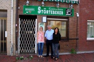 ![]() Ein Schüler der BBS II Aurich, Berufsfachschulklasse Bautechnik, säubert die gerade verlegten vier Stolpersteine. ![]() Gerschon (Sohn von Siegfried Stoppelmann) und Marlies Stoppelmann waren aus Aachen zur Verlegung gekommen und stehen hier mit Neelke Lieutenant, der Rechercheurin der Familienbiographien) vor dem Haus Wallstraße 8. Später stellte sich heraus, dass Familie Stoppelmann tatsächlich im Haus Wallstraße 18 gewohnt hat, wohin die Stolpersteine inzwischen umverlegt worden sind. |