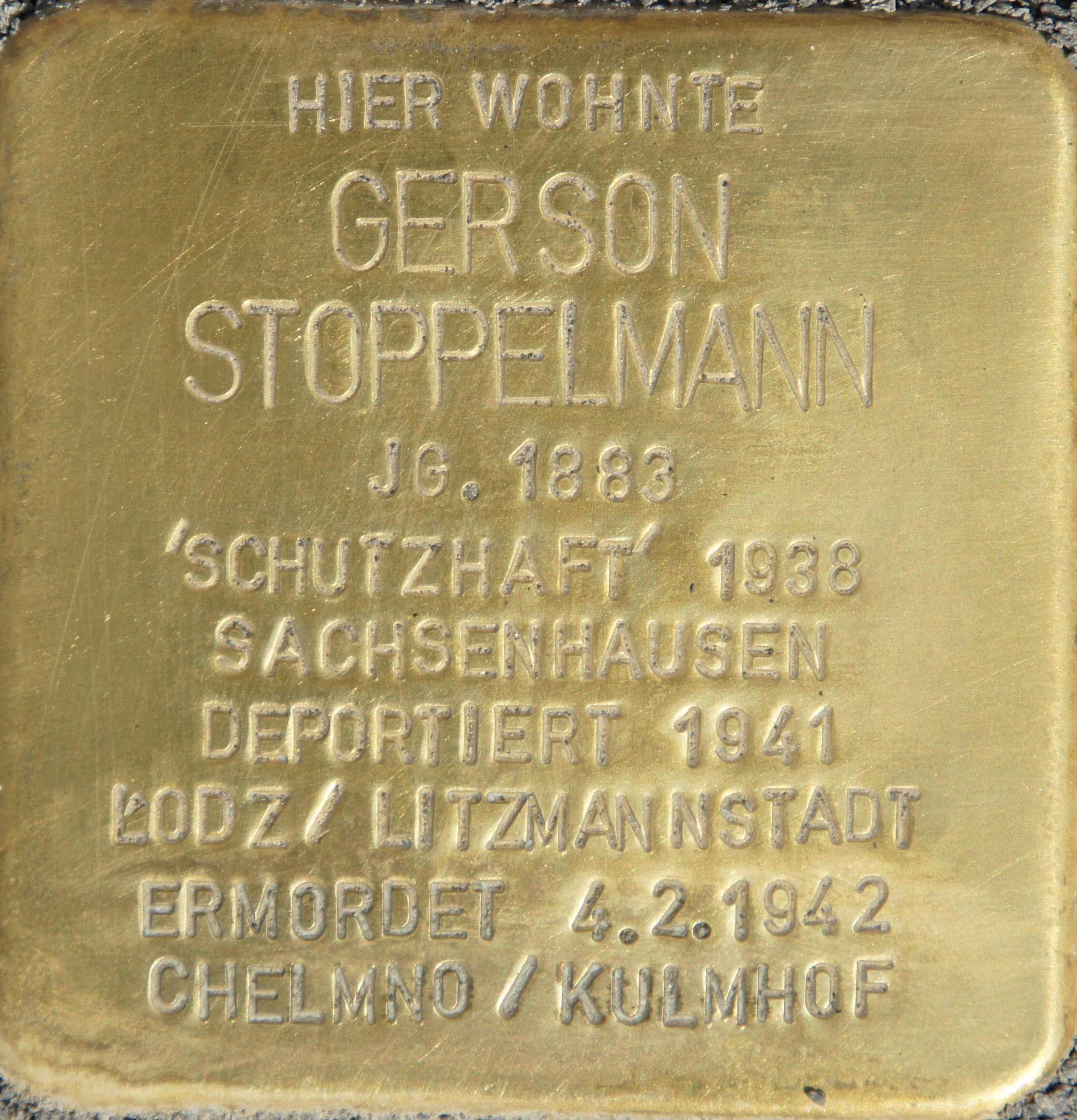| Die Familie Stoppelmann bestand aus dem Vater Gerson Stoppelmann und der Mutter Minna Stoppelmann geb. Wolff. Sie hatten zusammen zwei Söhne. Norbert Stoppelmann, der früh starb, und Siegfried Stoppelmann, der die Zeit der Judenverfolgung überlebte, weil er nach Palästina flüchten konnte. Gerson Stoppelmann wurde am 13. Dezember 1883 in Schapen geboren. Er verstarb vermutlich zusammen mit seiner Frau Minna Wolff am 4. Mai 1942 im Vernichtungslager Kulmhof in Chelmno nad Nerem (vgl. http://www.bundesarchiv.de, Stand: 27.02.2013). Seine Ehefrau Minna geb. Wolff wurde am 17. Januar 1887 in Aurich geboren. Ihre Eltern waren Samuel Wolff und Caroline Löwenthal (vgl. Geburtenregister, StAA Rep. 248, Nr. 943). Das Ehepaar Stoppelmann hatte zwei Söhne. Norbert Stoppelmann wurde am 27. März 1912 in Beesten im Kreis Lingen geboren und lebte ab dem 15. August 1933 in Wildeshausen in einer Heilstätte. Er verstarb am 19. Februar 1935 in Aurich (vgl. siehe Anhang, StAA Meldekarte Nr. 2) und wurde auf dem Auricher Judenfriedhof an der Emder Straße beigesetzt. Der zweite Sohn Siegfried Stoppelmann wurde am 5. Oktober 1913 in Aurich geboren und verstarb am 31. Dezember 2002 in Bremen (vgl. Stoppelmann, 2013).Bis zum Jahr 1913 lebte die Familie Stoppelmann in Beesten im Kreis Lingen, wo auch ihr erster Sohn Norbert geboren wurde. Danach zog die Familie nach Aurich. Von 1914 bis zum Dezember 1930 lebte die Familie in der Wallstraße 18, woraus sich schließen lässt, dass das ihr Hauptwohnsitz in Aurich war. In den darauffolgenden Jahren zog die Familie öfter um. Ab dem 31. Dezember 1930 wohnten sie für drei Jahre in der Kleinen Mühlenwallstraße 7 und zogen dann am 2. Februar 1933 zurück in die Wallstraße 8, wo sie wieder nur zwei Jahre wohnten (vgl. StAA Meldekarte Nr. 1). Ihr letzter Wohnsitz war vom 3. April 1935 bis zu ihrer Deportation 1940 ein Einfamilienhaus in der Wallstraße 6. Das Haus hatte zwei Schlafzimmer, eine Küche und ein Wohnzimmer (vgl. StAA Dep. 34, Nr. 143, S. 43). Zugezogen sind sie am 4. Februar 1914 aus Beesten und wurden am 6. Februar 1914 in Aurich gemeldet. Jedoch wurde Siegfried Stoppelmann am 5. Oktober 1913 schon in Aurich geboren, was den Schluss zulässt, dass sie schon eher nach Aurich gezogen sind (vgl. siehe Anhang, StAA Meldekarte Nr. 1). Gerson Stoppelmann betrieb in Aurich eine Schlachterei, die sie 1935 jedoch schließen musste, weil keine Kunden mehr zu ihnen kamen zum Einkaufen (vgl. Gries, 1998). Außerdem war die Familie Stoppelmann sehr gläubig und besuchte regelmäßig den Gottesdienst in der damaligen Synagoge der Auricher Judengemeinde (vgl. Stoppelmann, 2013).Gerson Stoppelmann wurde in der Novemberpogromnacht am 9. November 1938 zusammen mit anderen Auricher Juden verhaftet und am nächsten Morgen ins Konzentrationslager Sachsenhausen deportiert. Bis zum 15. Dezember 1938 war er im Konzentrationslager Sachsenhausen inhaftiert. Am 15. Februar 1940 mussten Gerson Stoppelmann und seine Frau Minna Aurich verlassen und wurden zusammen nach Berlin gebracht. Am 18. Oktober 1941 kamen sie von Berlin aus nach Litzmannstadt ins Ghetto. Von dort aus wurden sie am 4. Mai 1942 nach Chelmno nad Nerem ins Vernichtungslager Kulmhof deportiert (vgl. http://www.bundesarchiv.de, 27.02.2113). Von dort sind sie nicht mehr lebend zurückgekehrt. Die letzte Nachricht, die Gerson und Minna Stoppelmann hinterließen, war „eine Art Telegramm vom Internationalen Roten Kreuz vom 6. November 1940, dass von Berlin aus nach Herzlia in Palästina gesendet wurde“ (Stoppelmann, 2013). Danach gab es kein Lebenszeichen mehr von ihnen.