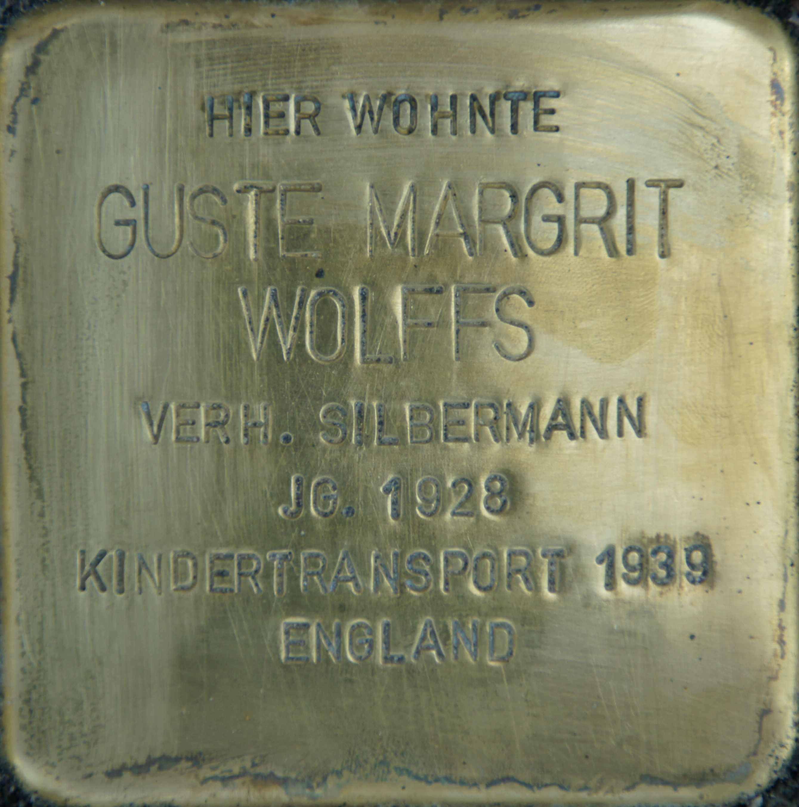 Guste Margrit Wolffs wird als jüngstes Kind des Viehhändlers Heimann Wolffs und dessen Frau Rosa, geb. Stahl am 8. Oktober 1928 in Aurich geboren. Sie hat drei ältere Brüder: Die Zwillinge Wolff und Lutz, geboren 1917 und Otto, der 1926 das Licht der Welt erblickte.