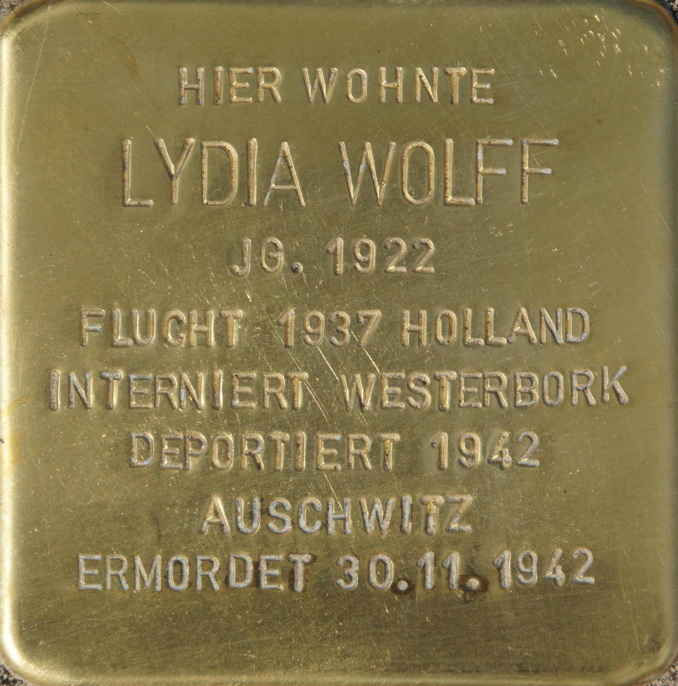 | Lydia Wolff wird am 8. September 1922 wird als einziges Kind von Levi und Marianne Wolff in Emden geboren. Ihre Eltern waren damals 36 Jahre alt. Schon bald zieht die Familie von Emden nach Aurich.