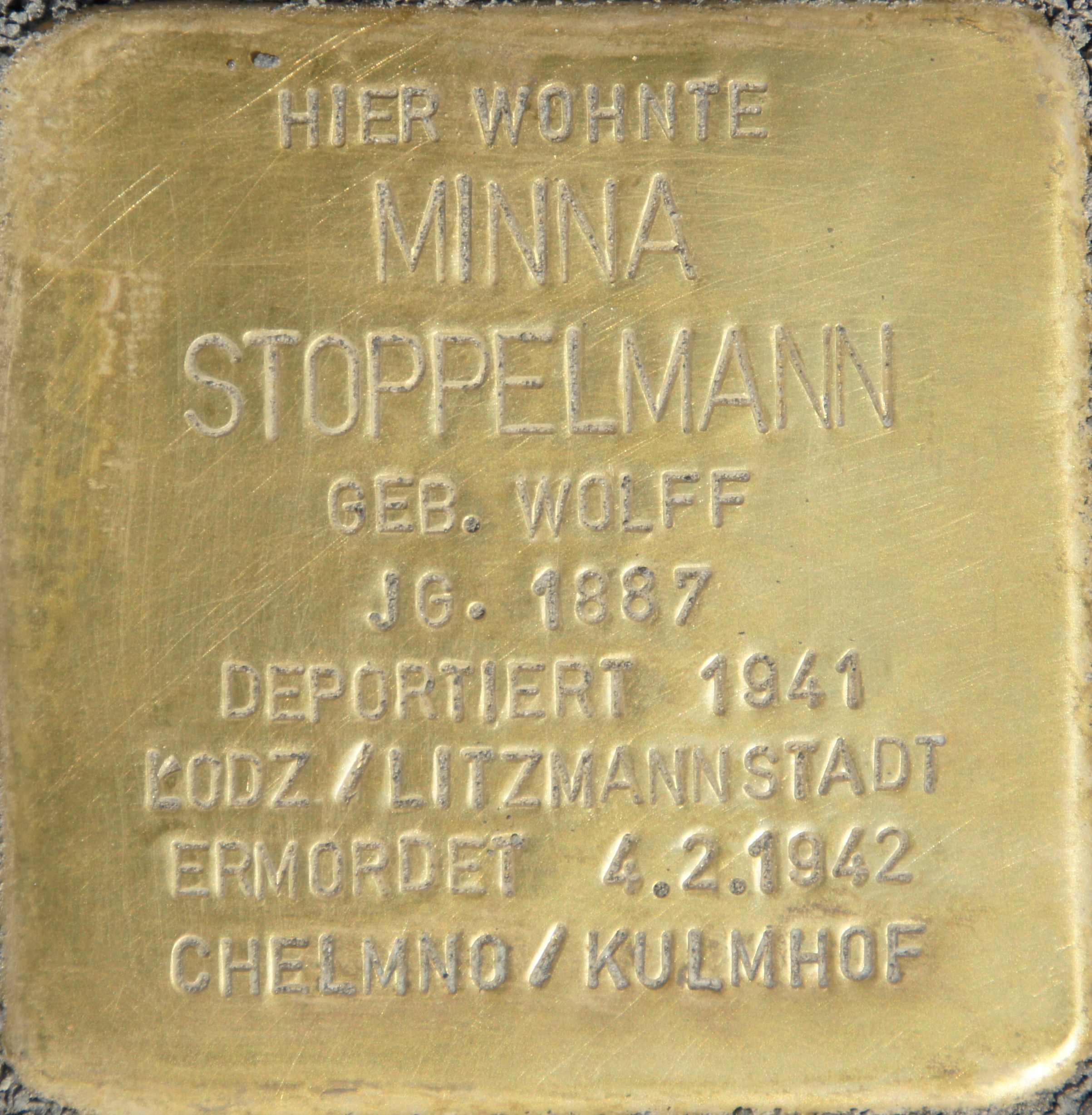 Die Familie Stoppelmann bestand aus dem Vater Gerson Stoppelmann und der Mutter Minna Stoppelmann geb. Wolff. Sie hatten zusammen zwei Söhne. Norbert Stoppelmann, der früh starb, und Siegfried Stoppelmann, der die Zeit der Judenverfolgung überlebte, weil er nach Palästina flüchten konnte. Minna geb. Wolff wurde am 17. Januar 1887 in Aurich geboren. Ihre Eltern waren Samuel Wolff und Caroline Löwenthal (vgl. Geburtenregister, StAA Rep. 248, Nr. 943). Ihr Ehemann Gerson Stoppelmann wurde am 13. Dezember 1883 in Schapen geboren. Er verstarb vermutlich zusammen mit seiner Frau Minna Wolff am 4. Mai 1942 im Vernichtungslager Kulmhof in Chelmno nad Nerem (vgl. http://www.bundesarchiv.de, Stand: 27.02.2013). Das Ehepaar Stoppelmann hatte zwei Söhne. Norbert Stoppelmann wurde am 27. März 1912 in Beesten im Kreis Lingen geboren und lebte ab dem 15. August 1933 in Wildeshausen in einer Heilstätte. Er verstarb am 19. Februar 1935 in Aurich (vgl. siehe Anhang, StAA Meldekarte Nr. 2) und wurde auf dem Auricher Judenfriedhof an der Emder Straße beigesetzt. Der zweite Sohn Siegfried Stoppelmann wurde am 5. Oktober 1913 in Aurich geboren und verstarb am 31. Dezember 2002 in Bremen (vgl. Stoppelmann, 2013). Bis zum Jahr 1913 lebte die Familie Stoppelmann in Beesten im Kreis Lingen, wo auch ihr erster Sohn Norbert geboren wurde. Danach zog die Familie nach Aurich. Von 1914 bis zum Dezember 1930 lebte die Familie in der Wallstraße 18, woraus sich schließen lässt, dass das ihr Hauptwohnsitz in Aurich war. In den darauffolgenden Jahren zog die Familie öfter um. Ab dem 31. Dezember 1930 wohnten sie für drei Jahre in der Kleinen Mühlenwallstraße 7 und zogen dann am 2. Februar 1933 zurück in die Wallstraße 18, wo sie wieder nur zwei Jahre wohnten (vgl. StAA Meldekarte Nr. 1). Ihr letzter Wohnsitz war vom 3. April 1935 bis zu ihrer Deportation 1940 ein Einfamilienhaus in der Wallstraße 6. Das Haus hatte zwei Schlafzimmer, eine Küche und ein Wohnzimmer (vgl. StAA Dep. 34, Nr. 143, S. 43). Zugezogen sind sie am 4. Februar 1914 aus Beesten und wurden am 6. Februar 1914 in Aurich gemeldet. Jedoch wurde Siegfried Stoppelmann am 5. Oktober 1913 schon in Aurich geboren, was den Schluss zulässt, dass sie schon eher nach Aurich gezogen sind (vgl. siehe Anhang, StAA Meldekarte Nr. 1). Gerson Stoppelmann betrieb in Aurich eine Schlachterei, die er 1935 jedoch schließen musste, weil keine Kunden mehr zu ihnen kamen zum Einkaufen (vgl. Gries, 1998). Außerdem war die Familie Stoppelmann sehr gläubig und besuchte regelmäßig den Gottesdienst in der damaligen Synagoge der Auricher Judengemeinde (vgl. Stoppelmann, 2013). Gerson Stoppelmann wurde in der Novemberpogromnacht am 9. November 1938 zusammen mit anderen Auricher Juden verhaftet und am nächsten Morgen ins Konzentrationslager Sachsenhausen deportiert. Bis zum 15. Dezember 1938 war er im Konzentrationslager Sachsenhausen inhaftiert. Am 15. Februar 1940 mussten Minna Stoppelmann und ihr Mann Gerson Aurich verlassen und wurden zusammen nach Berlin gebracht. Am 18. Oktober 1941 kamen sie von Berlin aus nach Litzmannstadt ins Ghetto. Von dort aus wurden sie am 4. Mai 1942 nach Chelmno nad Nerem ins Vernichtungslager Kulmhof deportiert (vgl. http://www.bundesarchiv.de, 27.02.2113). Von dort sind sie nicht mehr lebend zurückgekehrt. Die letzte Nachricht, die Gerson und Minna Stoppelmann hinterließen, war „eine Art Telegramm vom Internationalen Roten Kreuz vom 6. November 1940, dass von Berlin aus nach Herzlia in Palästina gesendet wurde“ (Stoppelmann, 2013). Danach gab es kein Lebenszeichen mehr von ihnen. Ein Schüler der BBS II Aurich, Berufsfachschulklasse Bautechnik, säubert die gerade verlegten vier Stolpersteine. Gerschon (Sohn von Siegfried Stoppelmann) und Marlies Stoppelmann waren aus Aachen zur Verlegung gekommen und stehen hier mit Neelke Lieutenant, der Rechercheurin der Familienbiographien) vor dem Haus Wallstraße 8. Später stellte sich heraus, dass Familie Stoppelmann tatsächlich im Haus Wallstraße 18 gewohnt hat, wohin die Stolpersteine inzwischen umverlegt worden sind. |