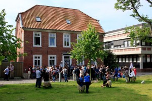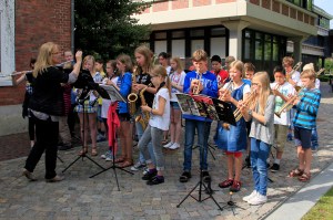 Hier spielt die Bläserklasse des Gymnasiums Ulricianum Aurich unter der Leitung von Frau Könemann-Glashoff zu Ehren der Familie Wolffs auf. Wolff Heimann Wolffs war der letzte jüdische Abiturient des Ulricianums, alle Patenschaften für die Familie wurden von dieser Schule übernommen.