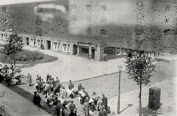 Razzia in der Uiterwaardenstraat (in der Nähe von Trompenburgstraat) Ecke Gaaspstraat 59 am 20. Juni 1943: Die zur Deportation nach Westerbork bestimmten werden abgeführt. So dürfte es sich auch bei Henni Kleerekoper ereignet haben. Ein Anwohner, A Wijnberg fotografierte heimlich hinter der Gardine. Stadsarchiev Amsterdam