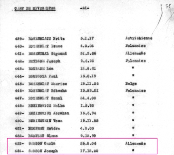 | Fotos: | – Hochzeitsfoto Carla Hoffmann und Josef Samson – Josef Samson als Soldat der Französischen Armee – Transportliste |