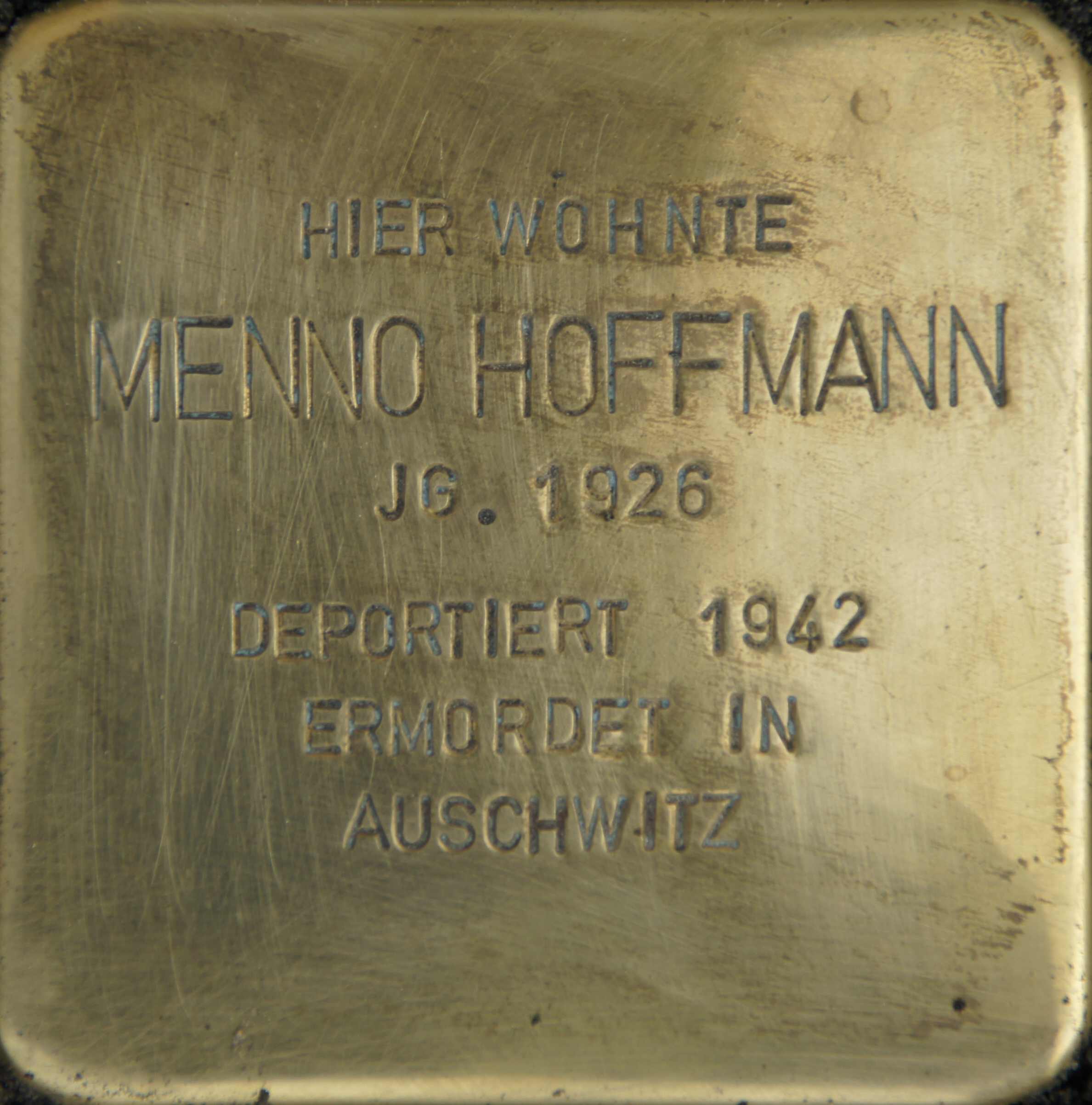 Menno Hoffmann wird am 26. März 1926 in Aurich geboren. Er ist das erste Kind des Pferde- bzw. Viehhändlers Friedrich Hoffmann und dessen Frau Rahel, geb. Wolff. Menno hat zwei jüngere Schwestern, Jutta, die eineinhalb Jahre nach ihm geboren wird und bereits im Alter von 18 Monaten verstirbt und Mirjam, die am 23. September 1929 zur Welt kommt. Menno und seine Schwester wachsen in Aurich wohl recht behütet auf, die Geschäfte des Vaters laufen zunächst gut und Mutter Rahel wird im Haushalt regelmäßig von Dienstmädchen unterstützt. Zudem leben die Großeltern sowie viele Onkel, Tanten, Cousins und Cousinen von Menno in der Stadt, denn die Familien seiner Eltern sind „alteingesessene“ Auricher.
