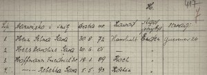 | Rebekka Hoffmann wird am 5.05.1893 geboren als das 14. Kind der Eltern Benjamin Baruch Wallheimer und Eva Markus geb. Herzberg. Rebekka hat noch drei jüngere Geschwister. Ihr Vater betreibt mit seinen Onkeln Levy und Abraham Cohen das Viehhändlergeschäft und Schlachterhandwerk im Haus Breiter Weg 1 in Aurich. Hinter dem Haus dort befinden sich Stallungen und Räume einer koscheren Fleischfabrikation. Die Waren werden in ganz Deutschland vertrieben.
