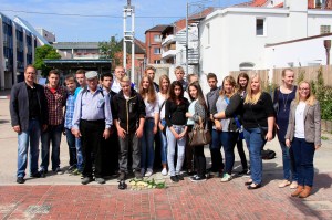 Familie Zuntz mit Schülerinnen und Schülern der Klasse 9 E2 der Realschule Moordorf, den Paten des Stolpersteines für Heinz (Henry).