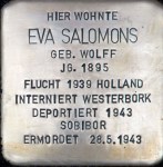 | Eva Salomons, geborene Wolff, wird am 5. Mai 1895 in Aurich geboren. Mit ihrer Mutter Regine Wolff geborene von der Wall, ihrem Vater Joseph Levy Wolff und den fünf Geschwistern Frieda (24.7.1892), Louis (4.9.1893), Adolf (13.5.1896), Georgina (3.2.1898) und Gustav (26.8.1902) wächst Eva in Sandhorst auf. Ihr Vater betreibt einen Viehhandel. Die Familie hatte einen Hof mit Acker und Garten in Sandhorst Am Tiergarten, zu der Zeit Sandhorst Nr. 7 genannt. Der ältere Bruder Louis stirbt bereits 1900 im Alter von 6 Jahren. Die älteren Schwestern Frieda und Georgina und die beiden jüngeren Brüder Adolf und Gustav heiraten und gründen eigene Familien. Georgina lebt mit ihrem Mann im elterlichen Haus. Ihre Eltern sterben 1920 bzw. 1929. Ihr Bruder Gustav erbt den elterlichen Hof, der aber 1935 zwangsversteigert werden muss und verkauft wird. 1918 stirbt Evas Schwester Georgina, knapp zwei Jahre nach ihrer Heirat mit Levy Salomons und hinterlässt den einjährigen Sohn Kurt. Nach dem Tod ihrer Schwester heiratet Eva am 13. Juni 1919 Levy, den Witwer ihrer Schwester von Georgina, und zieht mit ihm und seinem Sohn in die Wallstr. 4.Levy Salomons, genannt Ludwig, wird am 14. August 1891 in Lage im Kreis Bad Bentheim geboren. Zum Zeitpunkt seiner Geburt lebt seine Familie in Deutschland. Sie zieht später zur anderen Seite der deutsch-niederländischen Grenze, nach Denekamp in die Region Dinkelland in der Provinz Overijssel. Seine Eltern Senetta ten Brink und Cumpert Levy Salomons stammen aus einer Familie, die als Kaufleute, Viehhändler und Schlachter arbeiten. Levy ist der Älteste, seine beiden Geschwister heißen Jettchen und Alex. Jettchen arbeitet kurzzeitig in Aurich als sogenannte Stütze im Haushalt der Familie Wolff in der Julianenburger Str. 3. Der Cousin Isaak Salomons heiratet ebenfalls nach Aurich. Levys Vater stirbt früh im Jahre 1925, seine Mutter lebt bis zu ihrem Tod im September 1942 in Denekamp in der Nordhorsche Straat 70. Im Alter von 23 Jahren zieht Levy nach Aurich und heiratet Georgina Wolf. Sie leben im Haus ihrer Eltern in Sandhorst. Dort wird sein Sohn Kurt geboren. Nach dem Tod seiner Frau heiratet Levy am 13. Juni 1919 Eva, die Schwester von Georgina. Kurt Salomons kommt am 19. Februar 1917 zur Welt. Er wird von seiner Stiefmutter Eva großgezogen. 1931 geht Kurt mit seinen 14 Jahren nach Köln. Er tritt nicht in die Fußstapfen seines Vaters, sondern wird Schlosser. Weitere Station ist laut Meldekartei Düsseldorf. Über seinen Lebensweg konnte ich keine weiteren Spuren finden. Als 1933 das rituelle Schlachten verboten wird, kommt der wichtigste Erwerbszweig der jüdischen Mitbürger in wirtschaftliche Bedrängnis. Es folgen Boykottaufrufe und weitere sogenannte Rassegesetze, die den jüdischen Bürgern die Lebensgrundlage entziehen sollen, sie nach und nach aus der Gesellschaft ausgrenzt und ihnen ihre Rechte entzieht. Die antisemitischen Feindseligkeiten gipfeln in den gewalttätigen Demütigungen in der Reichspogromnacht am 9. November 1998. Bereits im Dezember 1933 gibt die Familie Salomons ihr Zuhause nach 15 Jahren auf und meldet sich nach Sandhorst ab. Sie wohnen zunächst kurz bei Evas jüngstem Bruder Gustav in Evas Elternhaus. Anschließend kommen sie von 1934 bis 1938 bei Verwandten in der Julianenburger Str. 3 unter. Die letzte Station der Familie in Aurich ist ab dem 4. Januar 1938 die Emder Str. 16, das Haus der israelitischen Gemeinde. Nach dem Schrecken der Pogromnacht versucht sich die Familie in Sicherheit bringen. Levy emigriert am 31. Dezember 1938 nach Holland, am 4. Januar 1939 kommt Eva nach. Ihr Ziel ist Middelburg in der Provinz Zeeland, im Vlissingenweg. Kurt ist bereits am 17. Juli 1938 dorthin geflohen. Nach der Besatzung der Niederländer durch die deutsche Wehrmacht am 10. April 1940 beginnt auch hier die systematische Verfolgung der Juden. Ab 1941 müssen Juden den gelben Stern an ihrer Kleidung tragen. Am 21.Oktober 1942 wird die Familie aufgefordert Middelbourg zu verlassen und nach Amsterdam in die Jekerstr. 41 umziehen. Eva und Kurt werden nach einer dreitägigen Fahrt noch am Tag ihrer Ankunft am 28. Mai 1943 ermordet. Levy Salomons stirbt am 9. März 1943 in Medemblikin der Provinz Noordholland unter ungeklärten Umständen. Es bleibt offen, ob er noch versucht hat, eine Fluchtmöglichkeit oder ein Versteck zu finden, oder ob er nicht mehr in der Lage war, die Verfolgung gesundheitlich und psychisch zu verkraften. Die einzigen Überlebenden der Familien von Eva und Levy sind Gustavs 1. Frau Gelly geb. Wolffs, die sich 1935 scheiden ließ und am 4. April 1937 mit ihren Kindern Ilana (23.05.27) und Joseph (10.03.1930) nach Palästina auswandert. Und es überleben drei der vier Kinder von Evas Schwester Frieda Samson: Josef, Hertha und Grete. Ihr Leben wird durch die Ausreise mit einem Kindertransport nach England gerettet. |