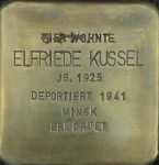 Elfriede Kussel wird am 18. Februar 1925 geboren. Sie ist die zweite Tochter des Schlachters und Viehhändlers Hugo Kussel und dessen Frau Marianne. Elfriede hat eine zweieinhalb Jahre ältere Schwester, Netta. Beide Mädchen wachsen in Aurich wohl zunächst recht behütet auf. Sie wohnen bis zum 1. Dezember 1930 noch im Haus der Großeltern, Wolff und Fanni Wolff, in der Wallstraße 8/10, das Elfriedes Großvater gehört. Auch ihre Tante Regine, die Schwester ihrer Mutter, wohnt dort mit ihrem Mann Benno. 1930 zieht die kleine Familie in die Marktstraße 2 um. Die Geschäfte von Elfriedes Vater scheinen gut zu laufen, was die lange Liste der Hausmädchen, die Elfriedes Mutter im Haushalt unterstützen, belegt.Mit dem Aufstieg der Nationalsozialisten muss sich dies jedoch grundlegend gewandelt haben: Schon 1933 gibt es erste Boykotte gegen jüdische Geschäfte, und in der Folgezeit hat die Familie immer stärker unter den Repressalien zu leiden. Der Umzug in das Haus in der Marktstraße 18 am 15. Januar 1938 ist wohl nicht zuletzt auch der schwierigen wirtschaftlichen Lage geschuldet. Elfriedes Vater muss seinen Betrieb schließlich schließen.