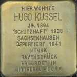 | Hugo Kussel wird am 16. Februar 1894 in Gruiten, Kreis Mettmann geboren. Er ist der Sohn von Martin Kussel und dessen Ehefrau Henrietta. (Die Vornamen Martin und Henrietta nennt Hugos Tochter Netta, auf der Seite „Historisches Dorf Gruiten“ finden sich die Angaben „Herz“ und „Jeanette“.) Hugos Vater ist Schlachter und Viehhändler und auch Hugo ergreift diesen Beruf, er lässt sich jedoch nicht in Gruiten nieder, sondern zieht am 27. Mai 1920 nach Aurich um, denn er heiratet Marianne Wolff, deren Vater ebenfalls Schlachter und Viehhändler ist. Der väterliche Betrieb in Gruiten wird von Hugos jüngerem Bruder Walter fortgeführt, Hugo eröffnet in Aurich eröffnet einen eigenen Viehhandel.