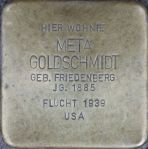 Sie heiratet Sally Goldschmidt und lebt mit ihm und der gemeinsamen Tochter Herta, die am 23.03.1909 in Aurich geboren wird, in der Osterstr. 13, bis sie am 05.03.1939 Harry Hoffmann, geb. 22.02.1911 in Aurich, heiratet. Die Mutter von Meta, Frau Therese Friedenberg geb. Sahn, geb. am 27.05.1859 im Kreis Jülich, zieht am 21.12.1926 von Recklinghausen zu ihrer Tochter nach Aurich in die Osterstr. 13. Meta Goldschmidt verlässt Aurich mit ihrem Mann Sally, ihrer Tochter Herta Hoffmann geb. Goldschmidt, deren Mann Harry Hoffmann, dessen Eltern Louis und Lina Hoffmann und dessen weiterer Sohn Manfred mit Ehefrau Rosie am 06.03.1939 in Richtung USA. Sie erreichen New York am 17.03.1939. |