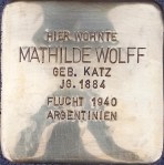 | Der Familie Wolff gelingt es rechtzeitig aus Deutschland zu flüchten. Sie entkommen ihrer Vernichtung durch das Nazi Terrorregime mit ihrer Flucht nach Italien und von dort nach Argentinien. Zusammen mit Kindern und Schwiegersohn fahren sie mit dem Zug nach Genua. Von dort legen sie mit dem Schiff Neptun ab und kommen am 03. Februar 1940 in Buenos Aires an.Vor der Shoa lebte die Familie Wolff in der Marktstraße 5. Abraham Isaak Wolff, der am 07. Juli1883 in Aurich geboren wurde mit seiner Frau Mathilde Wolff geb. Katz, die aus Gilsa in Hessen stammte und am 22. April1884 geboren wurde. Die Vorfahren der Familie Wolff haben schon sehr lange in Aurich gelebt und waren über Generationen als Schlachter tätig.