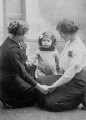 v. l.: Lilli Donner (15.08.1889), Henni Donner (*3.02.1913, Tochter von Louis Donner) und Frieda Plaut (*24.12.1890), Foto 1915