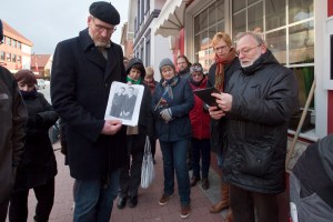 | Martin Wolff wurde am 24. September 1894 mit seinem Zwillingsbruder Abraham in Aurich als Kind von Wolff Abraham und Rosetta Wolff geboren. Er arbeitet im Viehhandel seines Vaters mit und führt nach dessen Tod den Betrieb weiter. Martin dient im 1. Weltkrieg als Soldat. Er wird verwundet und erhält als Auszeichnung das Eiserne Kreuz. Als der Naziterror beginnt, glaubt er, dass diese Auszeichnung und seine Mitgliedschaft im „Frontkämpferbund“ ihn vor Repressalien schützen würden.Martin heiratet Karoline Wolff und hat mit ihr fünf Kinder: Roesel, Hildegard, Hannelore, Wolfgang und Selly. In ihrem Buch „I will plant you a lilac tree” (2005) zeichnet die Tochter Hannelore ein liebenswertes Bild ihres Vaters.Im Juli 1934 zieht Martin Wolff mit seiner Familie nach Sandhorst in ein Nebengebäude von Gut Eschen. Der Besitzer des Gutes, Menko Dieken, hatte schon immer mit jüdischen Viehhändlern zusammengearbeitet und sieht offensichtlich auch 1934 kein Problem darin, Räume auf dem Gut an die jüdische Familie Wolff zu vermieten. Die Familie Wolff organisiert in den folgenden Jahren Ferienaufenthalte für jüdische Großstadtkinder aus Bremen und Berlin, die von der „Kinderlandverschickung“ der Nazis grundsätzlich ausgeschlossen sind. Dies nehmen Nazis in Aurich 1938 zum Anlass, in Zeitungsartikeln gegen „diesen skandalösen Zustand“ zu polemisieren, eine Unterschriftenliste gegen diese „Belästigung“ zu organisieren und die Schließung des „Kinderheims“ sowie die Kündigung der Familie Wolff zu erzwingen. Am 27.09.1938 müssen Martin und Karoline Wolff mit ihren Kindern Hannelore, Wolfgang und Selly Gut Eschen verlassen und ziehen nach Aurich in die Marktstraße 4.Auf Betreiben des Kreisbauernführers Trauernicht strengt der Landesbauernführer einen Prozess zur Aberkennung der „Bauernfähigkeit“ des Menko Dieken an. Dieser Prozess geht schließlich vor das Landeserbhofgericht in Celle, zieht sich über 2 ½ Jahre hin und endet zum Glück für Menko Dieken mit der Einstellung des Verfahrens. Am 10.10.1939 werden Martin Wolff mit Frau Karoline und Söhnen Wolfgang und Sally auf der Liste der im Kreis Aurich und Stadt Aurich gemeldeten Juden aufgeführt. Auch nach den traumatischen Erlebnissen des Terrors in der Reichspogromnacht bleibt die Familie in Aurich. Martin Wolff wird – vermutlich aufgrund seiner Kriegsverletzung – nicht wie die meisten jüdischen Männer nach der Pogromnacht in Sachsenhausen inhaftiert. In der Zeit des zunehmenden Naziterrors gegen die jüdische Bevölkerung wird die Familie auseinandergerissen. Ihre beiden älteren Töchter Rösel und Hildegard können nach England bzw. Palästina auswandern. Hannelore, ihr 3. Kind, geht nach Berlin in eine jüdische Schule für Kindergärtnerinnen; die beiden Jungen Wolfgang und Selly werden nach Köln in ein jüdisches Kinderheim geschickt. Im Februar 1940 müssen Martin und Karoline dann gezwungenermaßen Aurich verlassen. Sie ziehen mit Karolines Mutter, Henriette Wolff (wohnhaft in der Lilienstraße 9), nach Weimar in die Kaiserin Augusta Straße 57, später in das Haus Brühlplatz 6. Am 23.01.1942 wird Martin Wolff in Weimar verhaftet und zunächst in Buchenwald inhaftiert. Er war unerlaubterweise als Jude mit einem Fahrrad gefahren. Da Martin aufgrund einer Kriegsverletzung gehbehindert ist, konnte er nur so seine weiter entfernte Arbeitsstelle bei einem Kartoffelhändler erreichen. In der „Tötungsanstalt Bernburg“ wurden im Rahmen der „Aktion 14f13“, in der Sprache des Nationalsozialismus auch als „Sonderbehandlung 14f13“ bezeichnet, kranke, alte und als „nicht mehr arbeitsfähig“ betitelte KZ-Häftlinge im Deutschen Reich in den Jahren 1941 bis 1944 ermordet. Als Martins Frau Karoline in Weimar den Deportationsbefehl erhält, reist ihre Tochter Hannelore aus Berlin zu ihrer Mutter. Am 10. Mai 1942 muss sich Karoline mit ihren Kindern Hannelore, Wolfgang und Selly in der Viehauktionshalle von Weimar zur „Abfertigung“ einfinden – eine erniedrigende Prozedur. Am 12.05.1942 erreicht der Zug Lublin mit 1.002 Deportierten. Karoline lebt zunächst mit ihren Kindern im dortigen Ghetto und wird später nach Auflösung des Ghettos in Belzyce ermordet. Ein genaues Todesdatum ist nicht bekannt. Die Tochter Hannelore kann den Völkermord überleben, da sie auf Schindlers Liste gesetzt wird. Die Söhne Wolfgang und Selly werden ermordet. Die Töchter Roesel und Hildegard überleben ebenfalls. |