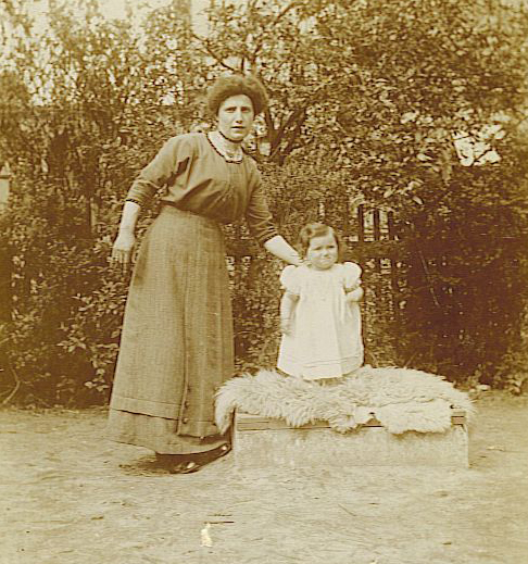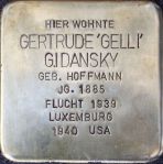 | Gertrude Gidansky wird am 20. Februar 1885 in Aurich geboren. Sie ist die Tochter von Zvi und Susannah Leers Hoffmann aus Aurich. Zvi hatte vier Söhne mit seiner ersten Frau, Caroline de Vries, die nach der Geburt des jüngsten Sohnes 1881 starb. Danach heiratete er wieder und hatte mit Susannah einen Sohn, Semmy, und eine Tochter, nämlich Gertrude, genannt Gelli. Alle Kinder wachsen als Teil ein und derselben Familie auf, ohne dass zwischen ihnen Unterschiede gemacht werden. Als Heranwachsende hilft Gelli im Haus und im Geschäft ihres Vaters, der mit alten und gebrauchten Möbeln handelte.Im August 1910 heiratet sie Karl Gidansky, der 1883 in Memel (Litauen) geboren wurde und als Schlachter für koscheres Schlachten und als Mohel nach Aurich gekommen ist. Sie bekommen die Wohnung oberhalb der Synagoge, denn Karl ist zu der Zeit Hausmeister des Gebäudes, und Gelli hat die Verantwortung für die rituellen Bäder der jüdischen Frauen. Die Tochter Merri Therese wird im Mai 1911 geboren und der Sohn Erich im April 1914.