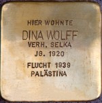| Eltern: Julius Wolff (geb. 12. 08.1891 in Aurich; verstorben 1946 in Haifa), Henriette Wolff geb. Katz (geb. 10.01.1891 in Guxhagen; verstorben 1954 in Israel)29.04.1920 Dina wird in Aurich geboren, Wohnung und Geschäft der Eltern in der Norderstraße 29