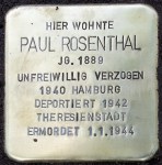 Paul und Elisabeth heiraten am 5. September 1925. Das Paar ist für damalige Verhältnisse schon eher „älter“ – Paul ist 36, Elisabeth 29 Jahre alt. Die beiden wohnen zunächst in der Hafenstraße 14, am 10. Juni 1926 ziehen sie in die Norderstraße 24. Ein halbes Jahr darauf, im Dezember 1926, konvertiert Elisabeth dann zum Judentum – sie war ursprünglich evangelisch-lutherisch. Im Oktober 1927 schließlich ziehen Paul und Elisabeth in das Haus in der Rudolf-Eucken-Allee 4 um. Hier sollten sie bis zum März 1939 leben, als sicherlich wirtschaftliche Schwierigkeiten beide zwingen, in die Julianenburger Straße Nr. 3 umzuziehen. Als die Auricher Judengemeinde im Februar 1940 die Nachricht erhält, dass alle jüdischen Einwohner Ostfriesland bis zum 1. April 1940 zu verlassen haben, meldet sich zunächst Paul alleine ab, um für sich und seine Frau eine neue Bleibe zu finden. Paul zieht nach Hamburg, wo er eine Wohnung in der Papagoyenstraße 1 findet. Am 4. März verlässt auch Elisabeth Aurich für immer und meldet sich nach Hamburg zu ihrem Mann ab. Später zieht das Paar nach Berlin um, wo es in der Rosenthaler Straße 65 eine Unterkunft findet. Von hier wird Paul schließlich im Sommer 1942 nach Theresienstadt deportiert, Elisabeth bleibt allein in Berlin zurück: Obwohl Elisabeth zum Judentum konvertiert war, wurde sie nicht gemeinsam mit ihrem Mann deportiert. Elisabeth wurde als „Geltungsjüdin“ betrachtet und wurde daher zunächst von der Deportation ausgenommen. Zu einer Deportation von Elisabeth sollte es jedoch auch später nicht mehr kommen: Am 1. Januar 1944 wird Paul in Theresienstadt ermordet, genau sechs Monate später, am 1. Juli, nimmt Elisabeth sich das Leben. Sie wurde 48 Jahre alt, ihr Mann Paul 55. Erschreckend bei der Recherche war, dass über Paul Rosenthal kaum Informationen zu finden waren – er und seine Frau hatten keine Kinder und keinen bedeutenden Besitz, so dass keine Unterlagen und Akten entstanden. Paul war bis zu dieser Recherche nicht einmal als Opfer des Nationalsozialismus im Gedenkbuch des Bundesarchivs aufgeführt. Die Stolpersteinverlegung trägt damit in ganz besonderer Weise dazu bei, dass auch Paul Rosenthal nicht vergessen wird. |