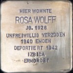 | Rosa Wollf wird am 29.01.1926 als erstes Kind des Kaufmanns Wilhelm Moses Wolff und seiner Frau Erna geb. Wallheimer in Aurich geboren. Sie wird nach ihrer Großmutter, der Mutter ihres Vaters, benannt. Die kleine Familie wohnt in Aurich zunächst im Kirchdorferweg 20 und in der Norderstraße 18. Als die Familie weiteren Zuwachs erhält, steht ein Umzug in die Tannenbergstraße 7 an: Rosas kleiner Bruder Berndt Leopold wird am 24. Januar 1930 in Aurich geboren. Seine Eltern geben ihm den Zwischennamen Leopold in Gedenken an Wilhelms Bruder, der 1916 im Ersten Weltkrieg fiel. Drei Jahre später ist die Familie dann komplett: Am 22. August 1933 kommt das Nesthäkchen Erika in Aurich zu Welt. Zeitgleich zieht die Familie in eine Wohnung in der Marktstraße 25 um, wo auch die Stolpersteine verlegt wurden. Am 16.06.1939 muss die Familie erneut umziehen, sehr wahrscheinlich aus wirtschaftlichen Gründen: Ab dem 16. Juni 1939 wohnen Wilhelm, Erna, Rosa, Berndt und Erika in der Wallstraße 24, und von dort melden sie sich dann auch aus Aurich ab, denn bis zum 1. April 1940 sollten alle Juden Aurich verlassen haben.Berndt und Erika, zehn und sechseinhalb Jahre alt, verabschieden sich am 19. Februar 1940 von ihren Eltern und werden gemeinsam mit einer Reihe weiterer Kinder aus Aurich, unter anderem ihrem Cousin Horst und ihrer Cousine Vera Wallheimer, nach Köln gebracht. Rosa, die bereits 14 ist, kommt im jüdischen Altenheim in der Klaas-Tholen-Straße in Emden unter. Hier arbeitet sie möglicherweise als Dienstmädchen oder Haushaltshilfe. Wilhelm und Erna melden sich schließlich am 1. April 1940 aus Aurich ab. Als neue Adresse geben sie Berlin, Rosenstraße 2-4, an – eine Adresse der jüdischen Gemeinde. Unklar ist, wie lange die Wolffs in Berlin bleiben und wann die Kinder zu den Eltern zurückgekehrt sind. Erna zieht zunächst nach Recklinghausen, wohin auch die jüngere Tochter Erika zieht. Möglicherweise lebt auch Berndt dort bereits wieder bei seiner Mutter. Später sind Erna und alle drei Kinder in Oberhausen, in der Ellenbogenstraße 10, gemeldet. Von Oberhausen aus werden Erna, Rosa, Berndt und Erika auch schließlich deportiert: Vermutlich mussten sie sich bereits am 21. April 1942 am Sammelpunkt in Oberhausen einfinden, von wo aus sie nach Düsseldorf gebracht wurden. Die Deportation der Familie sollte am nächsten Tag erfolgen. Zunächst wurden alle Juden, die mit dem Transport DA 52 deportiert werden sollten, genauestens kontrolliert und durchsucht. Offiziell wurden alle „umgesiedelt“ und an ihrem neuen Wohnort im Osten warteten angeblich Arbeitsplätze auf alle. Auch Erna, Rosa, Berndt und Erika werden an Kleidung und Familienandenken soviel mitgenommen haben, so viel sie nur tragen konnten. Am 22. April 1942 verlassen schließlich 20 Personen- und Gepäckwagen den Bahnhof Düsseldorf-Derendorf. Gemeinsam mit Erna, Rosa, Erika und Berndt werden 938 Menschen ins Ghetto Izbica in Polen deportiert. Die Ankunft in Izbica muss für alle ein Schock gewesen sein: Nicht nur, dass allen Deportierten bereits in Lublin das Gepäck abgenommen wurde und die Menschen nun im wahrsten Sinne des Wortes „mittellos“ dastehen – Izbica ist ein ärmliches Dorf, überwiegend aus Holzhäusern errichtet und weitgehend ohne gepflasterte Straßen. Ursprünglich hatte der Ort gerade einmal rund 3000 Einwohner, nun wurde er mit immer neuen sogenannten „Umsiedlern“ vollgestopft. Arbeit gab es zudem fast gar keine. Izbica war ein Ghetto, genauer gesagt ein „Transitghetto“: Hier lebten die Deportierten einige Wochen bis Monate, bevor sie in die Vernichtungslager weiter verbracht wurden. Die Bedingungen in dem völlig überbevölkerten Ort sind katastrophal: Teilweise wohnen bis zu 10 Familien in einem Haus, es gibt kaum Toiletten und kaum etwas zu essen: Wer beispielsweise nicht arbeitet – und das sind fast alle Einwohner – erhält 50 Gramm Brot am Tag und etwas Suppe. Täglich verhungern 20 bis 30 Menschen, zudem grassieren mehrfach Seuchen wie Typhus. Insgesamt werden rund 16 000 Menschen in das das Ghetto Izbica deportiert, von denen rund 5000 im Ghetto selbst durch Krankheit und Hunger den Tod finden oder dort erschossen werden. Die übrigen werden in die Vernichtungslager deportiert, vor allem Belzec, Sobibor und Treblinka. Das Schicksal von Erna Wolff und ihren Kindern Rosa, Berndt und Erika ist bis heute unklar. Ihre Spur verliert sich mit Besteigen des Zuges in Düsseldorf. Am 28. April 1943 wurde das Ghetto Izbica aufgelöst, alle Juden, die dort lebten, waren zu diesem Zeitpunkt in Vernichtungslager deportiert oder erschossen worden. Erna Wolff war bei ihrer Deportation 46 Jahre alt, Rosa 16, Berndt 12 und Erika gerade einmal 9. Ausführliche Informationen zu den Eltern und zur Geschichte der Familie finden sich in den Biografien von Wilhelm Moses Wolff und Erna Wolff geb. Wallheimer. |