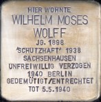 | Wilhelm Moses Wolff wird am 20. Januar 1898 in Aurich geboren. Er ist der Sohn des Kaufmanns Moses Levy Wolff (21.04.1850 – 16.04.1916) und seiner Frau Rosa, geb. Sternberg (5.03.1860 – 7.07.1917), die ebenfalls aus einer Auricher Kaufmannsfamilie stammt. Wilhelm wächst mit seinen neun Geschwistern (sein jüngster Bruder verstarb kurz nach der Geburt) in Aurich auf und tritt schließlich in die Fußstapfen seines Vaters: Wilhelm wird Kaufmann und lässt sich in Aurich nieder, wie auch mehrere seiner Brüder. Wilhelms Schwestern heiraten zum Teil wiederum in andere Auricher Kaufmannsfamilien ein, wie z.B. Wilhelms Schwester Erna (*1893), die Karl van Dyk ehelicht, der ein Kaufhaus in der Burgstraße (damals Wilhelmstraße) betreibt. Die Geschwister von Wilhelm Moses Wolff: Rosalie Moses Wolff verh. Wolff *2.05.1889 +12.09.1970 USA Moritz Moses Wolff *14.03.1890 +8.05.1942 Lodz (Stolperstein) Leopold Moses Wolff *1891 +1916 Feldlazarett Erna Moses Wolff verh. van Dyk *4.03.1893 +18.12.1944 KZ Sutthof (Stolperstein) Frieda Moses Wolff verh. Sternberg *24.07.1894 +1986 USA Iwan Moses Wolff *1896 +1937 Richard Wolff *1899 +1899 Hilde Wolff verh. Glück *17.07.1902 Flucht USA1923 heiratet auch Wilhelm – jedoch keine Frau aus einer Kaufmannsfamilie: Wilhelm hat sich in Erna Wallheimer verliebt. Sie ist die Tochter des Schlachters Benjamin Baruch Levy Wallheimer und dessen Frau Eva, geborene Herzberg. Auch Erna, die am 23. März 1896 zur Welt kommt, wächst in Aurich im Kreise einer großen und weit verzweigten Familie auf: Insgesamt hat Erna 17 Geschwister, von denen jedoch nur acht das Erwachsenenalter erreichen – die meisten ihrer Brüder und Schwestern versterben in den ersten drei Lebensjahren, oft sogar noch in den ersten Tagen nach der Geburt. Die überlebenden Brüder und Schwestern von Erna lassen sich ebenfalls zum Teil in Aurich nieder – ihr Bruder Wilhelm Benjamin beispielsweise lebt mit seiner Familie im „Breiten Weg 1“, beim heutigen Europahaus („Haus Wallheimer“), und arbeitet dort als Schlachter und Viehhändler.Bereits im Jahr nach der Hochzeit kommt das erste Kind von Erna und Wilhelm zur Welt: Ihr Sohn Meinhard Wilhelm wird am 14. April 1924 geboren, er verstirbt jedoch noch am Tag seiner Geburt. Angesichts dessen, dass Erna so viele Geschwister und nun auch schon das erste Kind verloren hat, muss es ihr bei ihrer nächsten Schwangerschaft im darauffolgenden Jahr recht mulmig gewesen sein. Doch dieses Mal geht alles gut: Am 29. Januar 1926 erblickt Töchterchen Rosa das Licht der Welt. Sie wird nach ihrer Großmutter, der Mutter ihres Vaters, benannt. Die kleine Familie wohnt in Aurich zunächst im Kirchdorferweg 20 und in der Norderstraße 18. Als die Familie weiteren Zuwachs erhält, steht ein Umzug in die Tannenbergstraße 7 an: Rosas kleiner Bruder Berndt Leopold wird am 24. Januar 1930 in Aurich geboren. Seine Eltern geben ihm den Zwischennamen Leopold in Gedenken an Wilhelms Bruder, der 1916 im Ersten Weltkrieg fiel. Drei Jahre später ist die Familie dann komplett: Am 22. August 1933 kommt das Nesthäkchen Erika in Aurich zu Welt. Zeitgleich zieht die Familie in eine Wohnung hier in der Marktstraße 25 um, wo nun auch die Stolpersteine verlegt werden. Auf den Geburtsurkunden der Kinder ist als Beruf des Vaters zunächst Kaufmann, bei Berndt und Erika dann „Reisender“ angegeben. Wilhelm war demnach wohl als fahrender Händler tätig und besaß keine Geschäftsniederlassung in der Stadt. Die Geschäfte sind vermutlich nicht herausragend gut gelaufen, denn nur bis 1926 waren Dienstmädchen im Haushalt beschäftigt, um Erna zu unterstützen. Der Aufstieg der Nationalsozialisten und die ersten Boykottaktionen ab Frühjahr 1933 werden ein übriges getan haben, um die finanzielle Situation der Familie zu erschweren. Rosa, Berndt und Erika wachsen in Aurich in der Zeit des Nationalsozialismus auf – die einzige, die sich in Ansätzen an eine Zeit „davor“ erinnern kann, ist Rosa: Sie ist bei der Ernennung Hitlers zum Reichskanzler immerhin schon sieben Jahre alt. Wie die anderen jüdischen Kinder aus Aurich werden Rosa, Berndt und Erika unter Schikanen, Drohungen und Misshandlungen durch sogenannte „arische“ Erwachsene und auch Kinder gelitten haben: Otto Wolffs beispielsweise, der in der Lindenstraße wohnte, berichtet, dass er als Kind mehrfach beschimpft und angefeindet und von zwei Hitlerjungen sogar um ein Haar ertränkt wurde. Als besonders schlimm müssen die Kinder die Nacht vom 9. auf den 10. November 1938 erlebt haben: In der Pogromnacht werden reichsweit die Synagogen in Brand gesetzt und auch das Auricher Gotteshaus wurde zerstört. Alle jüdischen Familien werden geweckt und aus den Häusern getrieben, die Männer werden verhaftet und zur sogenannten „Bullenhalle“ gebracht. Auch Wilhelm Wolff ist darunter. Wilhelm, Erna und die Kinder wissen nicht, was als nächstes geschehen wird und was ihrem Ehemann und Vater bevorsteht: In der Bullenhalle werden die Männer von der SA bedroht und gedemütigt, unter anderem müssen sie unter allgemeinem Gejohle Gebete aufsagen, singen und Exerzierübungen machen, und das die ganz Nacht hindurch. Am nächsten Morgen wird Wilhelm Wolff gemeinsam mit den übrigen verhafteten zum Ellernfeld gebracht, wo gerade ein Sportplatz angelegt wird. Die Männer müssen hier den ganzen Tag lang unsinnige Arbeiten ausführen, wie Sand von der einen Seite des Platzes zur anderen zu bringen, wobei viele Todesangst haben, denn sie befürchten, im nächsten Moment vor einem der Sandhügel erschossen zu werden. Erst um 18 Uhr ist die Tortur vorbei und die Männer werden ins Auricher Gefängnis gebracht, wo sie die Nacht verbringen und nun zum ersten Mal etwas zu essen und zu trinken erhalten. Am nächsten Morgen wird Wilhelm mit den übrigen Auricher Juden zunächst nach Oldenburg und dann ins Konzentrationslager Sachsenhausen gebracht. Wilhelm kann sich zuvor nicht einmal von seiner Familie verabschieden – er 