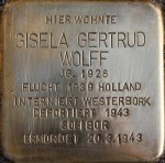 Gisela wird am 29. Dezember 1926 in Aurich geboren. Sie ist das zweite Kind von Jakob Isaak Wolff und seiner Frau Hertha geb. Löwenstein. Mehr als fünf Jahre zuvor, am 5. Mai 1921, wird ihr Bruder Fritz geboren. Ihre Mutter Hertha Löwenstein wird am 9. Januar 1894 in Obernkirchen im Kreis Schaumburg im südlichen Niedersachsen geboren. Sie ist die Tochter des Lehrers Sussmann Löwenstein und dessen Ehefrau Sara. Hertha ist das zweite von insgesamt sechs Kindern des Ehepaares. Sie zieht am 26.03.1920 aus Obernkirchen nach Aurich. In diesen Tagen hat sie Jakob Isaak Wolff aus Aurich geheiratet. Ihr Vater Jacob Isaak Wolff wird am 15. März 1887 in Aurich geboren. Er ist der dritte von sieben Söhnen des Schlachters Isaak Abraham Wolff und dessen Frau Regina, geb. Schulenklopper. Jacobs Brüder heißen Abraham, Joseph, David, Levy, Siegfried und Wilhelm. Jacobs Mutter Regina stammt aus Norden, sie ist die Tochter des Kaufmanns Joseph Hartog Schulenklopper und dessen Frau Rosette. 1901 ziehen die Eltern von Jacob nach Norden, wohl zu den Großeltern, der Grund hierfür ist unklar. Erst 1919, im Alter von 32 Jahren, kehrt Jacob nach Aurich zurück. Er ist beruflich nicht in die Fußstapfen seines Vaters getreten, sondern wird wie sein Großvater mütterlicherseits Kaufmann. Gemeinsam mit seinem Bruder David führt er einen kleinen Betrieb am Ostertorplatz Nr. 14. Jacob selbst lebt zunächst in der Lindenstraße 12. Dorthin zieht im März 1920 auch Jacobs frisch angetraute Ehefrau Hertha, geb. Löwenstein. Rund ein Jahr nach ihrer Hochzeit bekommen Hertha und Jacob ihr erstes Kind: Am 05. Mai 1921 kommt ihr Sohn Fritz auf die Welt. Fünfeinhalb Jahre später, am 29. Dezember 1926, wird dann Töchterchen Gisela Gertrud geboren. Spätestens ab 1925 scheinen die Geschäfte von Jacob recht gut zu laufen, denn Hertha wird von diesem Zeitpunkt an im Haushalt von Hausmädchen unterstützt. Im Februar 1931 zieht die Familie in das Haus am Ostertorplatz 13 um, möglicherweise, weil die Familie durch die Geburt der kleinen Gisela mehr Platz benötigt. Ein erster Hinweis darauf, dass die Familie zunehmend unter den Repressalien der Nationalsozialisten zu leiden hat, findet sich 1938: Im April zieht die Familie erneut um, und zwar in das Haus am Ostertorplatz 14, wo sich auch die Geschäftsräume befinden: So konnte Miete gespart werden. Fritz war zu diesem Zeitpunkt zudem bereits ausgezogen. Er hatte Aurich 1936 im Alter von fast 15 Jahren verlassen und war für ein dreiviertel Jahr nach Frankfurt am Main gezogen, möglicherweise, um eine Ausbildung zu beginnen. Nach seiner Rückkehr nach Aurich lebt er für rund drei Monate wieder hier, bevor er Ende April 1937 endgültig Ostfriesland verlässt und in die Niederlande emigriert. Er ist dort zunächst in Rotterdam und später in Leeuwarden gemeldet. Unklar ist, ob der sechzehnjährige Fritz ganz allein lebt oder – was wahrscheinlich ist – ob er familiäre Unterstützung hat: Seine Tante Johanna, die ältere Schwester seiner Mutter Hertha, lebt mit ihrem Mann bereits seit längerem in den Niederlanden. In Deutschland indes werden die Schikanen der Nationalsozialisten immer schlimmer. Am 9. November 1938 wird in der Pogromnacht die Auricher Synagoge niedergebrannt und alle jüdischen Männer werden verhaftet. Auch Jacob wird zur Auricher „Bullenhalle“ an der Emder Straße getrieben und dort die ganze Nacht über schikaniert: Er und die übrigen Verhafteten müssen unter dem Gejohle der Zuschauer beten, religiöse Lieder singen und Exerzierübungen machen. Auch am nächsten Tag wird dies fortgeführt: Die Männer müssen zum Ellernfeld laufen, wo eine Sportanlage gebaut werden soll, und dort beispielsweise Sand von einer Seite des Platzes auf die andere bringen. Überlebende des Holocausts berichten später, vor dem aufgeschütteten Sandhügel Todesängste ausgestanden zu haben: Die Verhafteten fürchteten, an diesem Tag auf dem Ellernfeld erschossen zu werden. Doch die Männer werden am Abend schließlich im Auricher Gefängnis eingesperrt, wo sie nun auch zum ersten Mal seit ihrer Verhaftung etwas zu essen und zu trinken bekommen. Am nächsten Morgen werden Jacob und die übrigen Männer zunächst nach Oldenburg und dann in das KZ Sachsenhausen bei Hamburg gebracht. Ziel der Maßnahme ist es, die letzten noch arbeitenden jüdischen Unternehmen zu ruinieren. Die Ereignisse im Herbst/Winter 1938 müssen bei Jacob und Hertha zu dem Entschluss geführt haben, auch ihre Tochter schnellstmöglich ins Ausland in Sicherheit zu bringen – auch wenn Gisela gerade erst zwölf Jahre alt geworden war. Im März 1939 verlässt daher auch Gisela Aurich und geht wie ihr Bruder nach Rotterdam. Wie oft sich die Geschwister noch sehen konnten, ist jedoch unklar, denn Gisela ist unter einer anderen Adresse gemeldet und zieht schon nach wenigen Monaten von Rotterdam nach Groningen um und lebt schließlich in Winschoten. Am gleichen Tag, an dem Gisela Aurich verlässt, beziehen Jacob und Hertha ihre letzte Wohnung in Aurich in der Marktstraße 25, denn das Geschäftshaus, in dem sie bisher lebten, musste verkauft werden. Im Februar 1940 ziehen schließlich auch Jacob und Hertha fort, sie melden sich nach Bremen ab. Hier verliert sich scheinbar ihre Spur. Einen letzten Hinweis liefert eine Polizeiauskunft aus dem Jahre 1950: Darin heißt es, beide seien am 17. November 1941 aus Bremen „evakuiert“ worden. Weitere Recherchen ergaben, dass am 17. November 1941 tatsächlich Juden aus Bremen verhaftet und auf dem Schulhof des „Gymnasiums am Barkhof“ festgehalten wurden, die dann am nächsten Morgen mit einem Zug über Hamburg nach Minsk in Weißrussland deportiert wurden. Hier verliert sich die Spur der Eheleute, ihre Verwandten haben nie wieder etwas von ihnen gehört. Am 28. August 1951 werden Jacob und Hertha für tot erklärt. Auch ihre Kinder Fritz und Gisela überleben den Holocaust nicht: Beide werden schließlich im Lager Westerbork interniert und von dort 