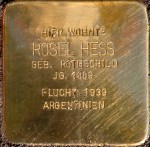 | Rosel Hess geb. Rothschild wird am 10. November in Waltersbrück bei Wetzlar (Hessen) geboren. Rosel war die Tochter von Seligmann Rothschild (1848-1925) und Hannchen Rothschild geb. Katzenstein aus Frankenau (1858-1932). Sie war das siebente von neun Kindern. Ihre Geschwister: Antonia (Toni) verh. Pfifferling *1881 Markus Rothschild *1882 +1970 (Long Island) Auguste verh. Nussbaum *1884 +1974 (New York) Jettchen *1886 +1887 Betty *1887 +1888 Victor Friedrich *1888 Frieda verh. Silberberg *1892 Deportation 18.06.1943 (Auschwitz) Emma verh. Edelmuth *1898Rosel Rothschild heiratete 1929 Joseph Hess (*4.03.1871) aus Papenburg. Wie die beiden sich kennengelernt haben, haben wir nicht herausfinden können. Joseph Hess kam eigentlich aus Papenburg. Er wurde 1871 dort geboren. Seine Eltern waren Moses Jacob Hess (*29.09.1829 in Nieuweschans +18.04.1904 Bunde) und Bertha geb. Rosenbaum (*1837 in Papenburg +6.07.1931 in Bunde). Joseph hatte sieben Geschwister: sechs Brüder und eine Schwester. Jacob Moses Hess *7.07.1861 Papenburg + 1942 Treblinka Zwei seiner Geschwister, seine kleine Schwester Friederike und sein jüngerer Bruder David, zogen auch nach Aurich. Für Friederike und ihren Mann Moritz wurden vor diesem Haus schon Stolpersteine verlegt, denn sie lebten zuletzt hier in Josephs Haus. David und seine Familie wohnten zuletzt in der Julianenburger Straße 3. Auch für sie wurden bereits Stolpersteine verlegt. Das Haus, in dem früher die Familie Hess gelebt hat, steht heute nicht mehr – es wurde abgerissen. Früher war hier am Marktplatz 15 das Warenhaus J.M. Valk und Söhne. Das Haus und das Geschäft gehörten Joseph Hess. Das Geschäft war eine Filiale eines großen und damals sehr bekannten Emder Kaufhauses. Filialen gab es auch in Norden (Neuerweg) und Jever (Neuestraße). Ein Jahr nach der Hochzeit bekamen Rosel und Joseph ein Baby: Ihre Tochter Else Inge wurde am 2. März 1930 geboren. Als Else drei Jahre alt war, kam Adolf Hitler in Deutschland an die Macht. Ab da wurde das Leben für Joseph, Rosel und Else in Aurich schwieriger. Es kauften z.B. immer weniger Leute im Kaufhaus von Joseph ein. Joseph überlegte schließlich, aus Aurich wegzuziehen, besonders, nachdem die Synagoge niedergebrannt worden war: Die jüdischen Männer waren in dieser Nacht alle verhaftet worden, die meisten wurden zwei Tage später in ein Konzentrationslager gebracht. Auch Joseph wurde verhaftet, weil er aber schon 67 Jahre alt war, durfte er am nächsten Morgen gehen. In und nach der Pogromnacht wurden am 10.11. 1938 von der SA-Standarte 63 auch das Warenlager der Firma von Joseph Hess im Wert von 35 – 40.000 Reichsmark ausgeraubt. Sicher hat Joseph spätestens nach den Ereignissen in der Reichspogromnacht beschlossen, Aurich zu verlassen. Sein Plan war, in die Niederlande auszuwandern und dort ein neues Geschäft zu eröffnen. Zum Glück hat seine Frau Rosel ihn davon abgehalten. Sie fürchtete zu Recht, dass die Familie auch in Holland nicht in Sicherheit wäre. Ein halbes Jahr später, am 27. März 1939, wanderten Joseph, Rosel und Else mit der „Monte Rosa“ nach Südamerika aus. Eigentlich wollten sie nicht weg, schon gar nicht in ein ganz fremdes, tausende von Kilometern entferntes Land. Else war gerade einmal neun Jahre alt. Keiner aus der Familie sprach Spanisch. Sie wussten nicht, was sie erwartet. Es muss für sie sehr schwierig und traurig gewesen sein. Viel Geld durften sie auch nicht mitnehmen: Gerade einmal 30 Reichsmark. Und das, obwohl Joseph das große Haus am Marktplatz für über 10.000 Reichsmark verkauft hatte (und eigentlich war das Haus sogar noch viel mehr Geld wert gewesen!). Aber die Nationalsozialisten erlaubten nicht, dass sie ihr Geld mitnahmen. Der Start in Argentinien war schwer – zugleich war die Familie aber auch froh, dort nun in Sicherheit zu sein. Drei Schwestern von Rosel waren auch nach Argentinien ausgewandert, sodass sie sich gegenseitig etwas unterstützen konnten. Auch von der jüdischen Gemeinde gab es Hilfe. Else wuchs nun in Argentinien auf. Sie heiratete Bert Lichtenstein und bekam einen Sohn, Roberto, der bei der Verlegung der Stolpersteine für seine Familie anwesend war und der seine Familie und ihr Schicksal näher vorstellte. Nach Kriegsende versucht die Familie Hess, einen Ausgleich für die 1938 geraubten Waren und das unter Wert an die Stadt Aurich verkaufte Haus zu erlangen. Die Ermittlungen wegen der verschwundenen Waren werden eingestellt, eine Rückerstattung geraubter Waren wird abgewiesen, da nicht nachweisbar. Die Stadt wehrt sich nachdrücklich gegen Rückerstattungsforderungen. Bei der Solpersteinverlegung am 19.09.2018 hielt der Enkelsohn von Rosel Hess, Roberto Lichtenstein, diese Ansprache: Osten und Westen Liebe Anwesende, vor ca 7 Jahren wurden die Stolpersteine meiner Grosstante Friederike und Grossonkel Moritz Lachmann verlegt. Damals schrieb ich über den Tod, der sie im Osten erwartete. Diesmal möchte ich über den Weg zum Westen berichten, der für meine Grosseltern Joseph und Rosel und meiner Mutter Else Inge das Leben bedeutete. Aber bevor sie auswanderten, mussten sie noch Schlimmes über sich ergehen lassen. Mein Mutter Else Inge erzählte mir von der Kristallnacht im November 1938, wo die Juden von Aurich mit zusehen mussten, wie die Nazis die Synagoge niederbrannten. Meine Mutter marschierte gerade vorbei als das Dach der Synagoge einbrach. Sie hat dann jahrelang keine Streichhölzer mehr angefasst, so beindruckt war sie von diesem Ereignis. Sie erzählte mir auch wie sehr sie gelitten hat, bis ihr Vater, der zusammen mit allen Männern verhaftet worden war, am nächsten Tag wegen seines fortgeschrittenen Alters freigelassen wurde. Die Reise gen Westen war nicht so ganz ohne. Mein Grossvater Josef wollte eigentlich nur nach Holland auswandern und dort ein Kohlegeschäft einrichten. Meine Grossmutter Rosel hat aber gesagt „aus diesem Kontinent müssen wir weg“, und so hat der gesunde Menschenverstand über den T