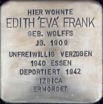| Edith Frank geb. Wolffs, geb 5.10.1909, ist die Tochter von Sarah Wolffs (geb. 20.10.1878) und dem Viehhändler und Schlachter Simon Cossmann Wolffs (geb. 14.9.1877). Ihre Eltern heiraten 1907 in Aurich.
