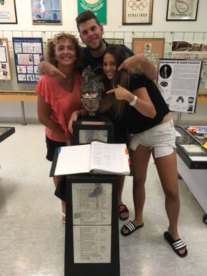 Irene Wolff-Katzenell mit ihren Kindern Nicolas und Micaela in der „International Swimming Hall of Fame“