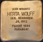 | Herta Ronsheim wird am 12.11.1912 in Abterode, Kreis Eschwege geboren. Ihre Eltern sind Moses (1870-1935) und Ida Ronsheim geb. Laub (*1874). Herta hat einen älteren Bruder Max Ronsheim (*20.04.1900).