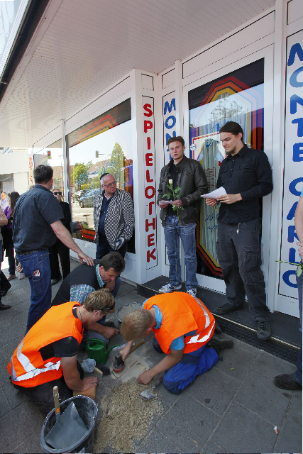 Die 3. Verlegung von Gedenksteinen in Aurich begann im „Krähennestergang 1“.