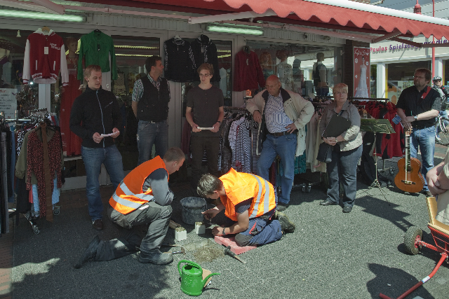 Die letzten Steine dieses langen Verlegetages wurden in der Osterstraße 25 und 8 verlegt. Wolfgang Neiweiser trug hier einige jiddische Lieder vor.