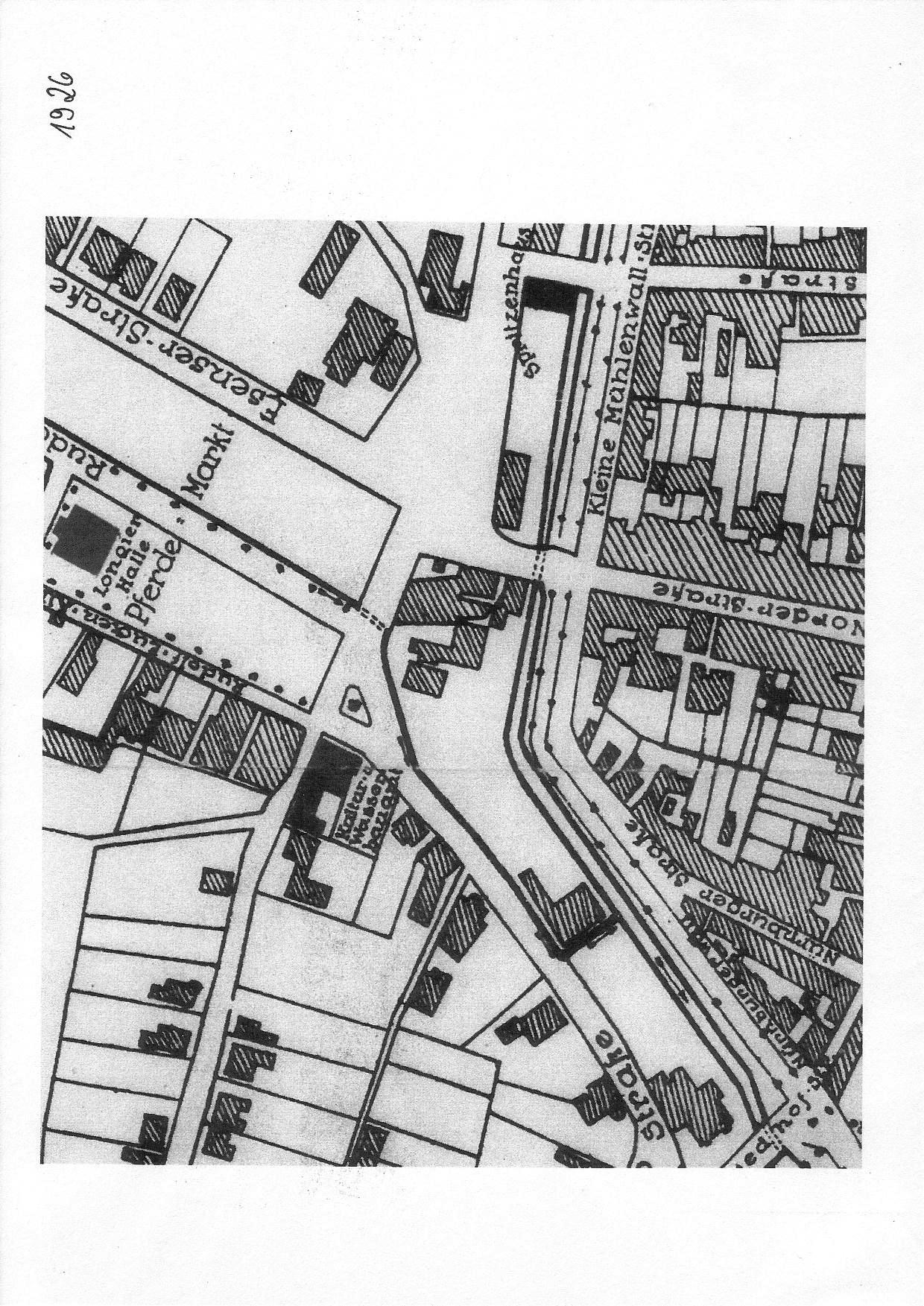 Auch an der Rudolf-Eucken-Allee 4, der nächsten Station, war es schwierig, den Verlegeort zu bestimmen, da die alten Häuser nicht mehr stehen und die Lage der Straße verändert wurde. Hier ein alter Lageplan und ein Foto der Umgebung aus den 20ger Jahren. Im Gedenken an seine Verwandten sprach hier Willi Samson ein Kaddischgebet.