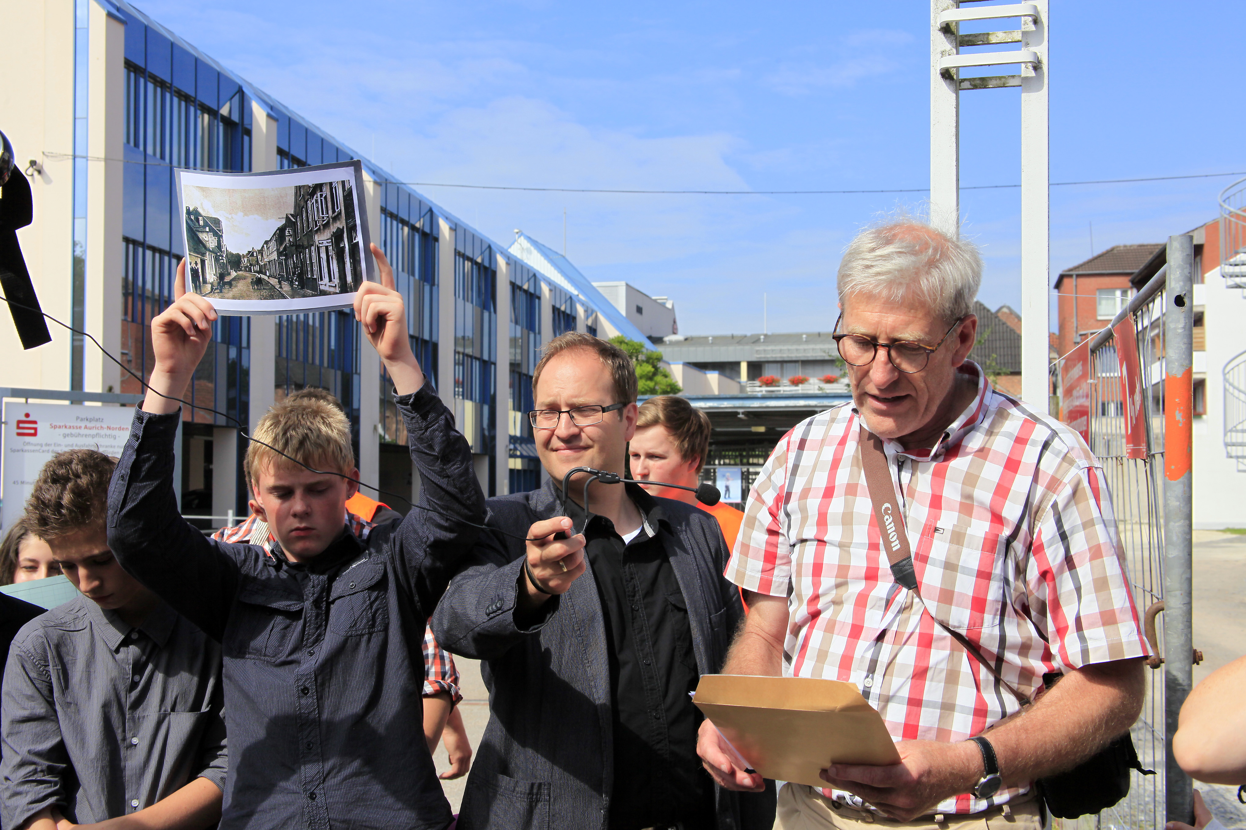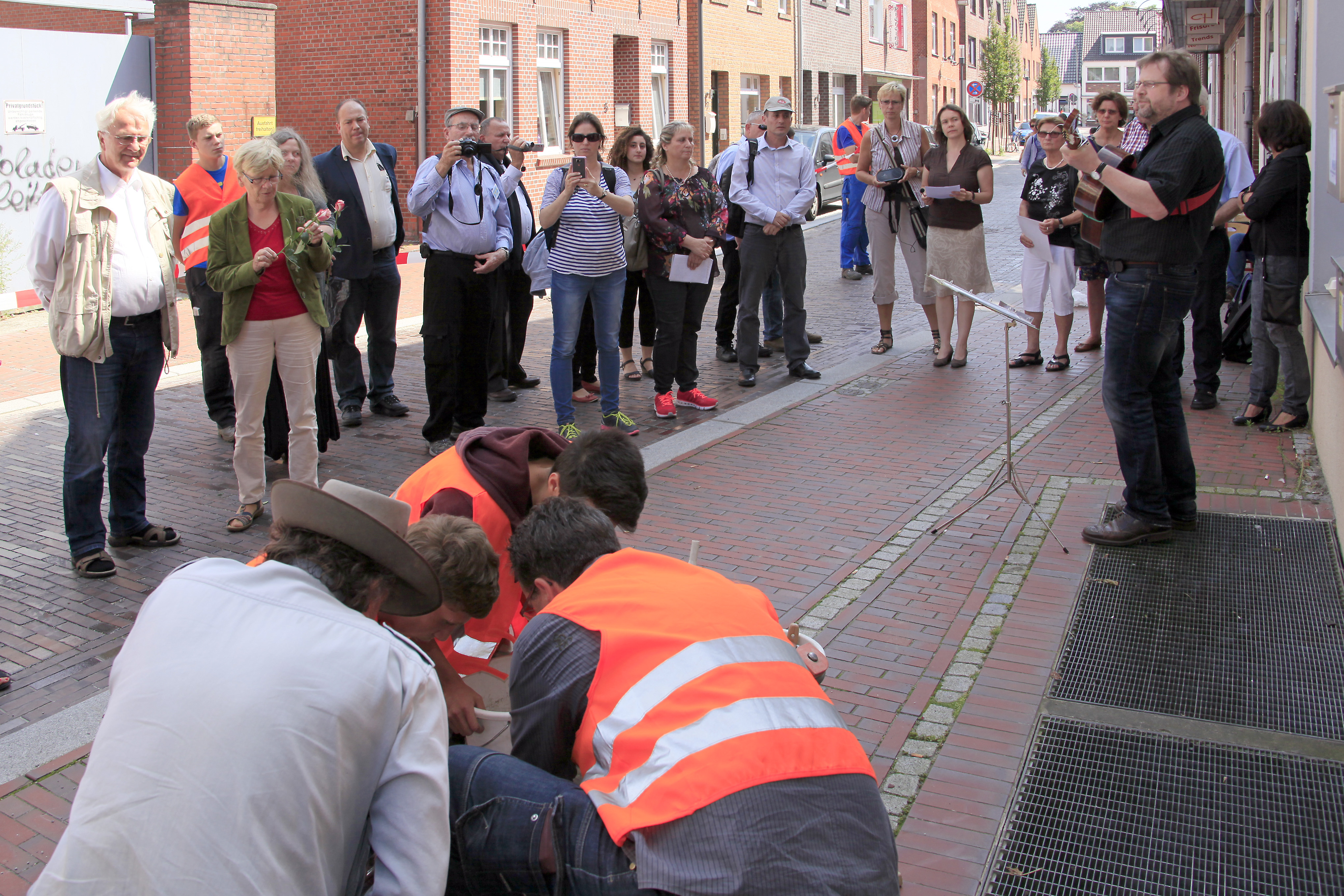 Am 17. Juli 2014 wurden 28 weitere Stolpersteine in der Auricher Innenstadt verlegt. Damit sind nun insgesamt 184 Gedenksteine verlegt. Die 7. Verlegung war keineswegs Routine, sondern ein besonders eindrucksvolles Erlebnis – zum einen durch die Beteiligung von Schülern des Gymnasiums Ulricianum, der IGS Aurich-West, der Realschule Moordorf und der Berufsfachschule Bautechnik der BBS II, zum anderen durch die Teilnahme von zahlreichen Verwandten der Familien, für die Stolpersteine verlegt wurden. Auch die Anwesenheit der Paten und die Anteilnahme der Auricher trug zu der besonderen Atmosphäre bei.