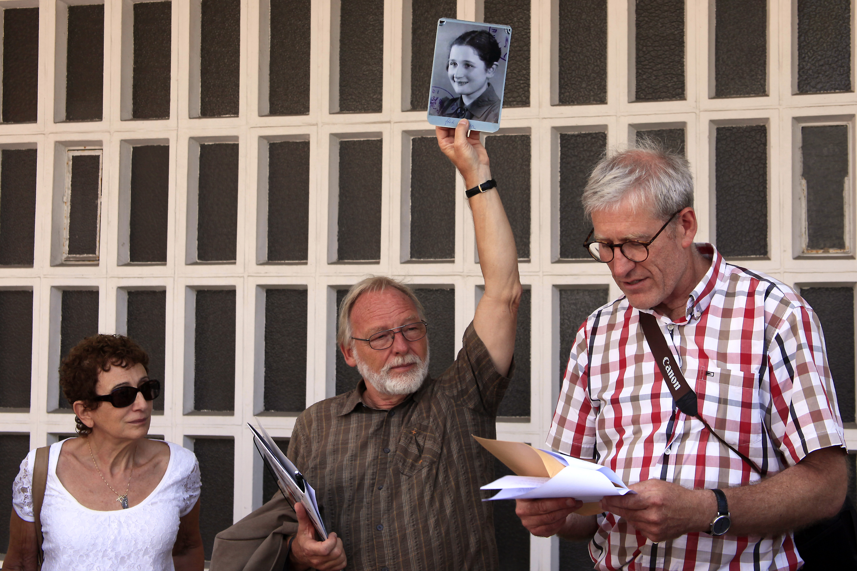An der ersten Verlegestelle werden die Stolpersteine für Familie Heimann Wolff verlegt.