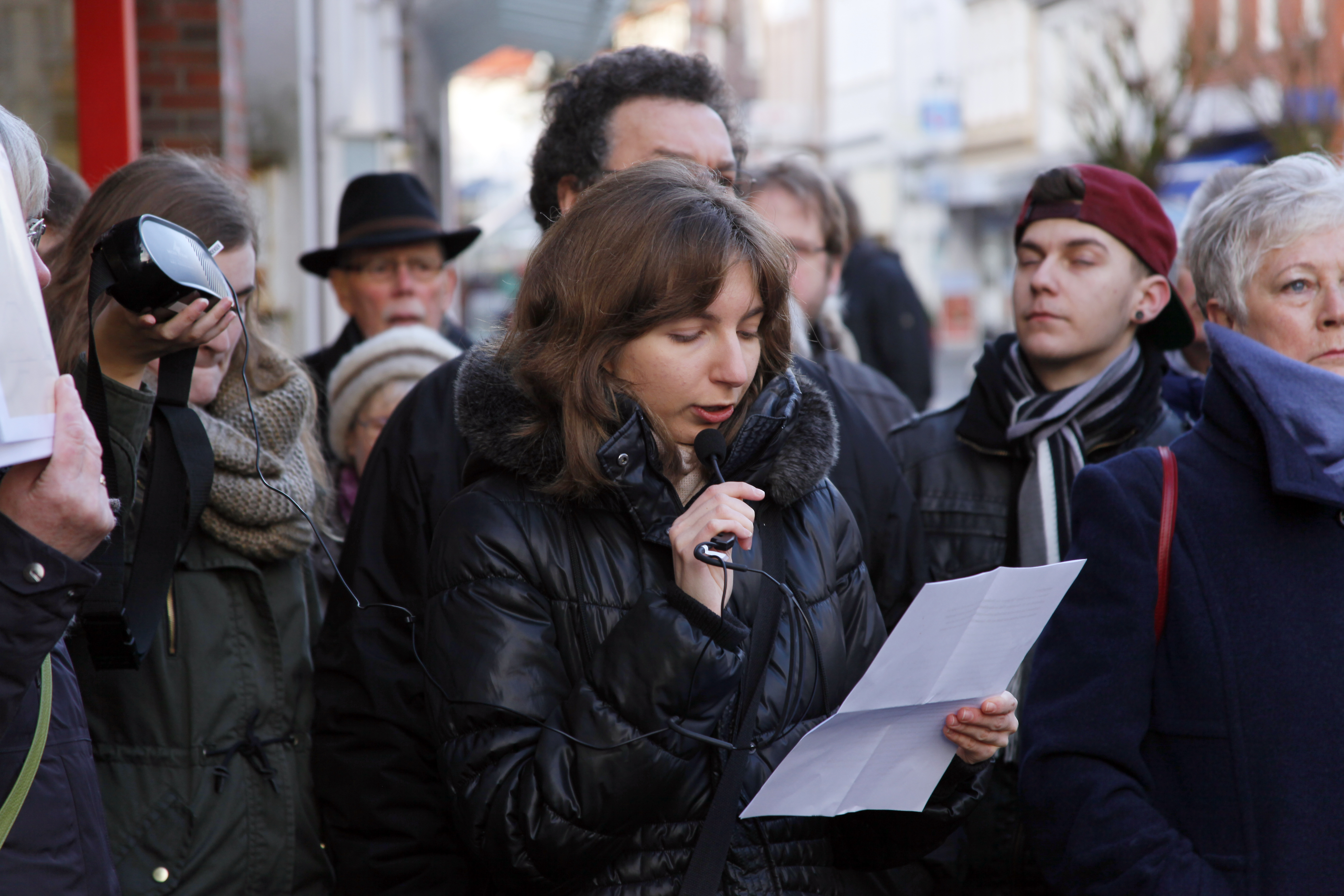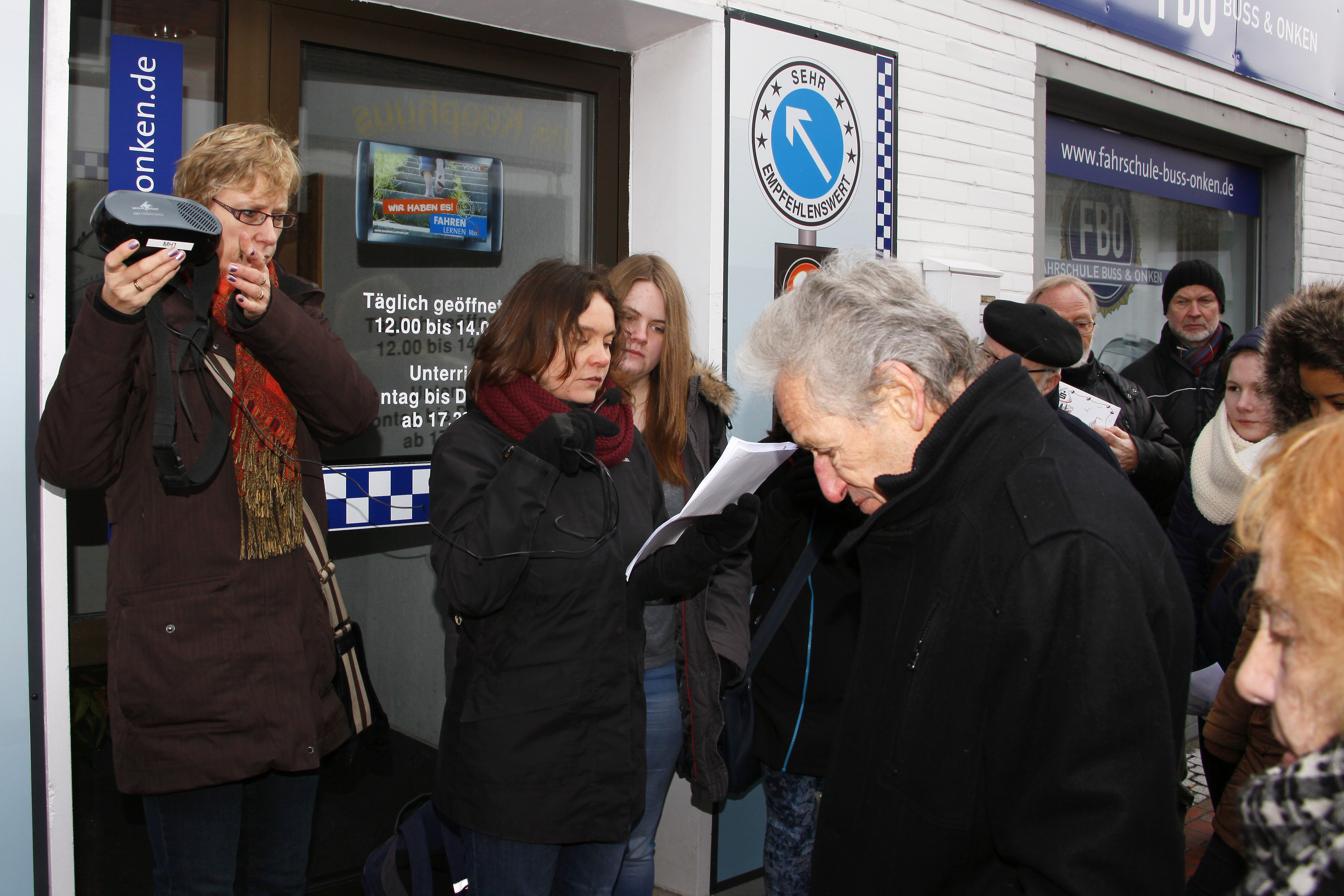 Rechts: Angelika Enders, Patin des Stolpersteines für Karoline Leers beim Vorlesen der Biographie