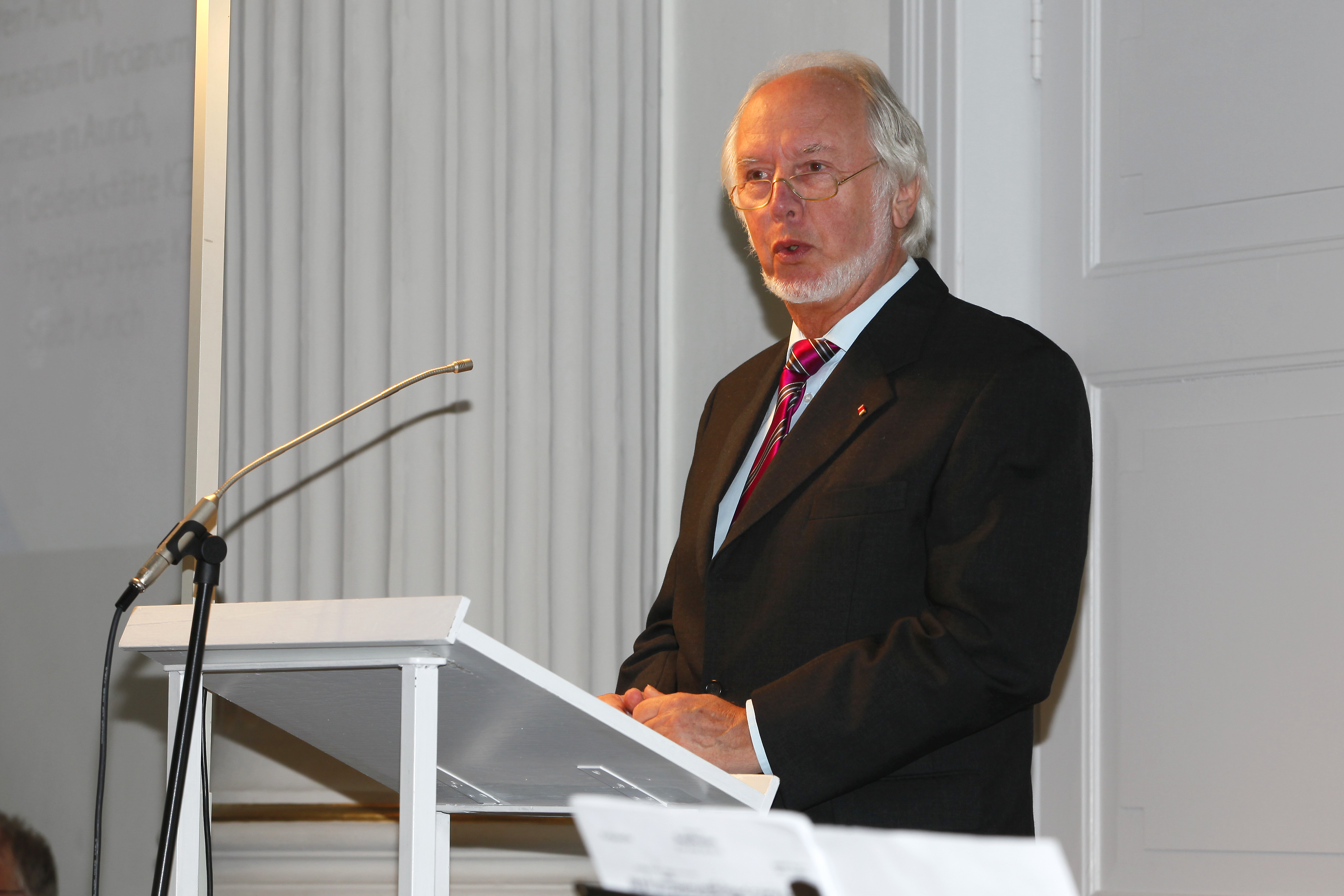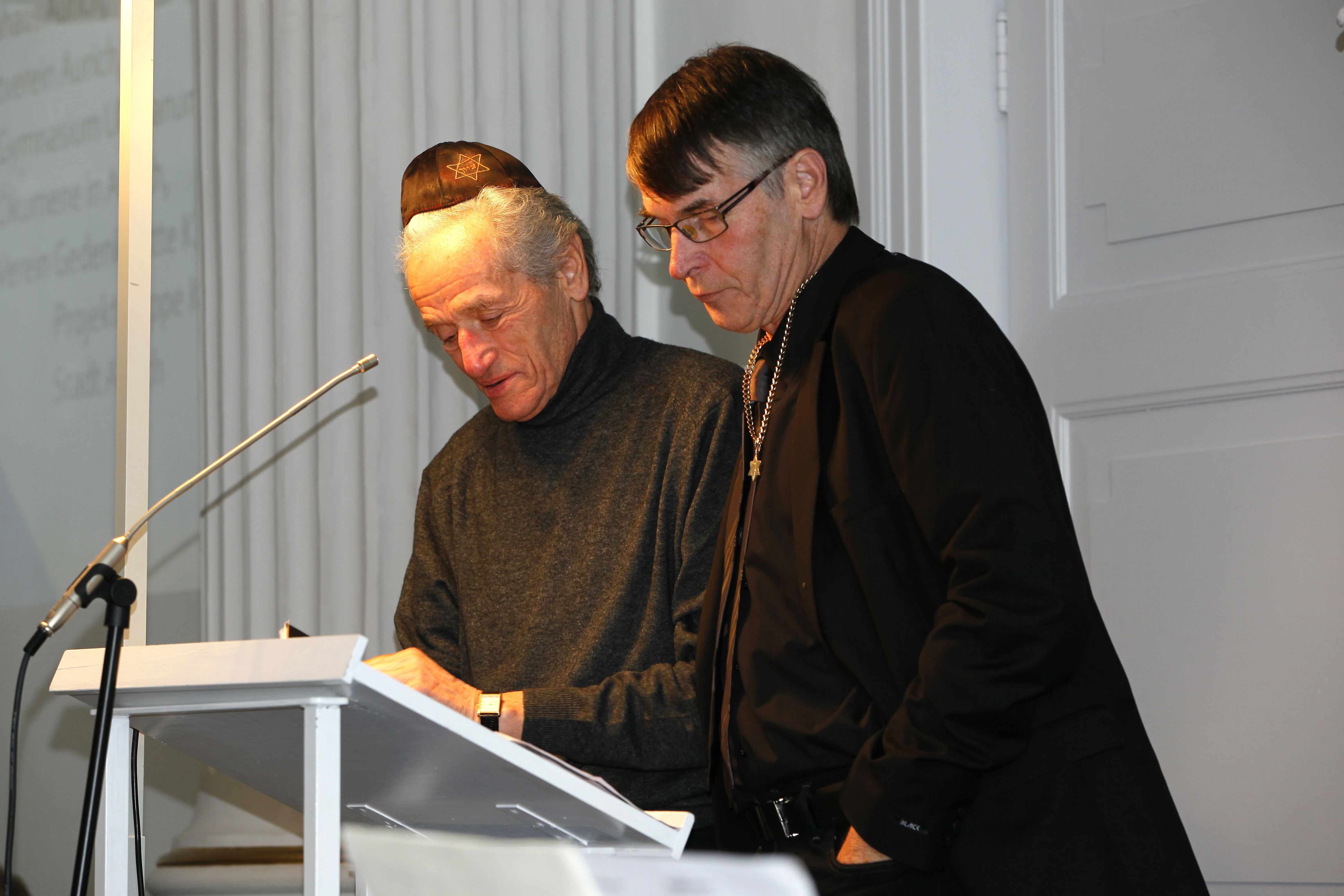 Jair Wolff (rechts) trägt – deutlich bewegt – stellvertretend für seinen Vater Ernst Wolff dessen Bericht vor, in dem er