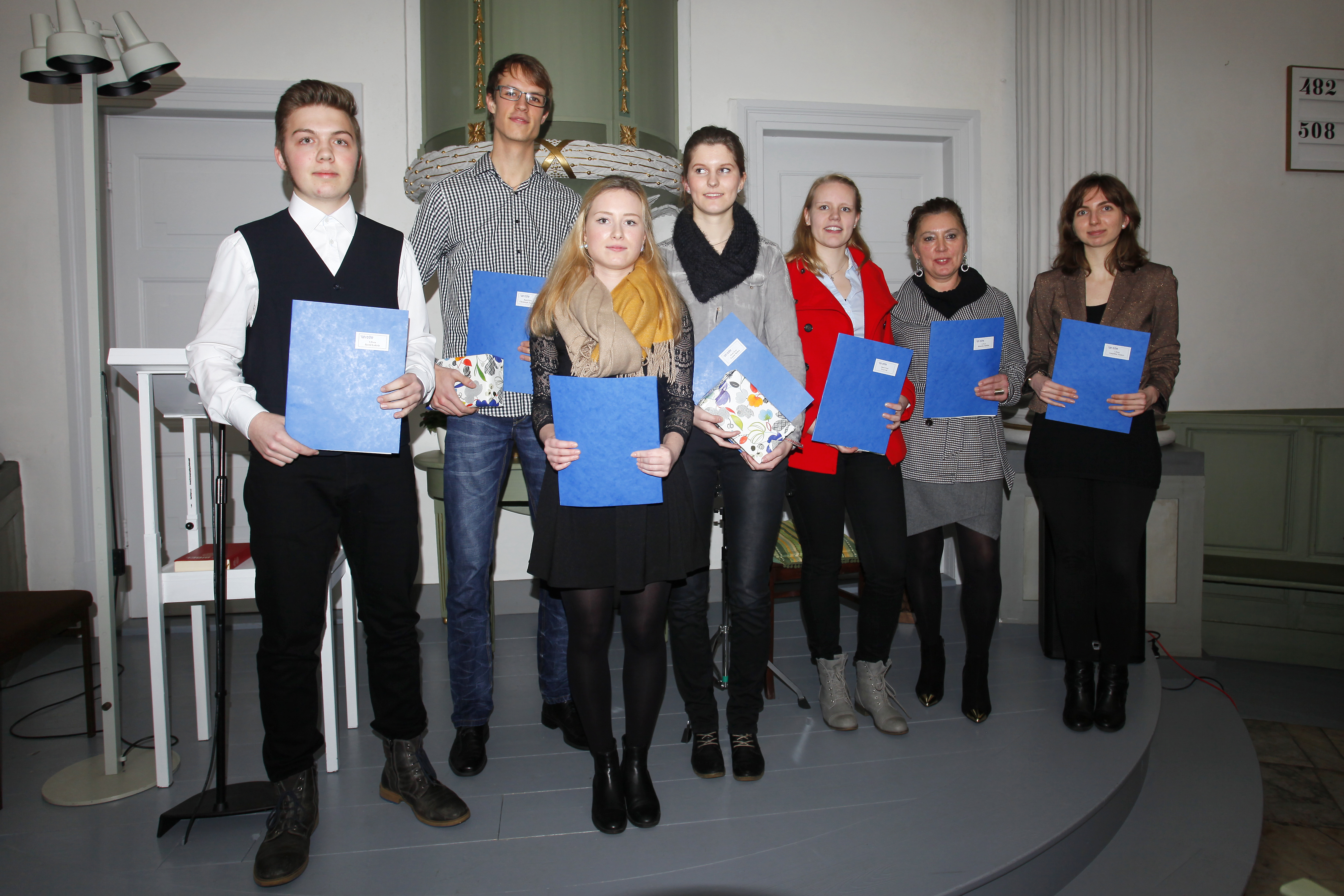 Rechts: Die Preisträger, deren Facharbeiten mit dem Schalom-Chaver-Preis ausgezeichnet wurden.