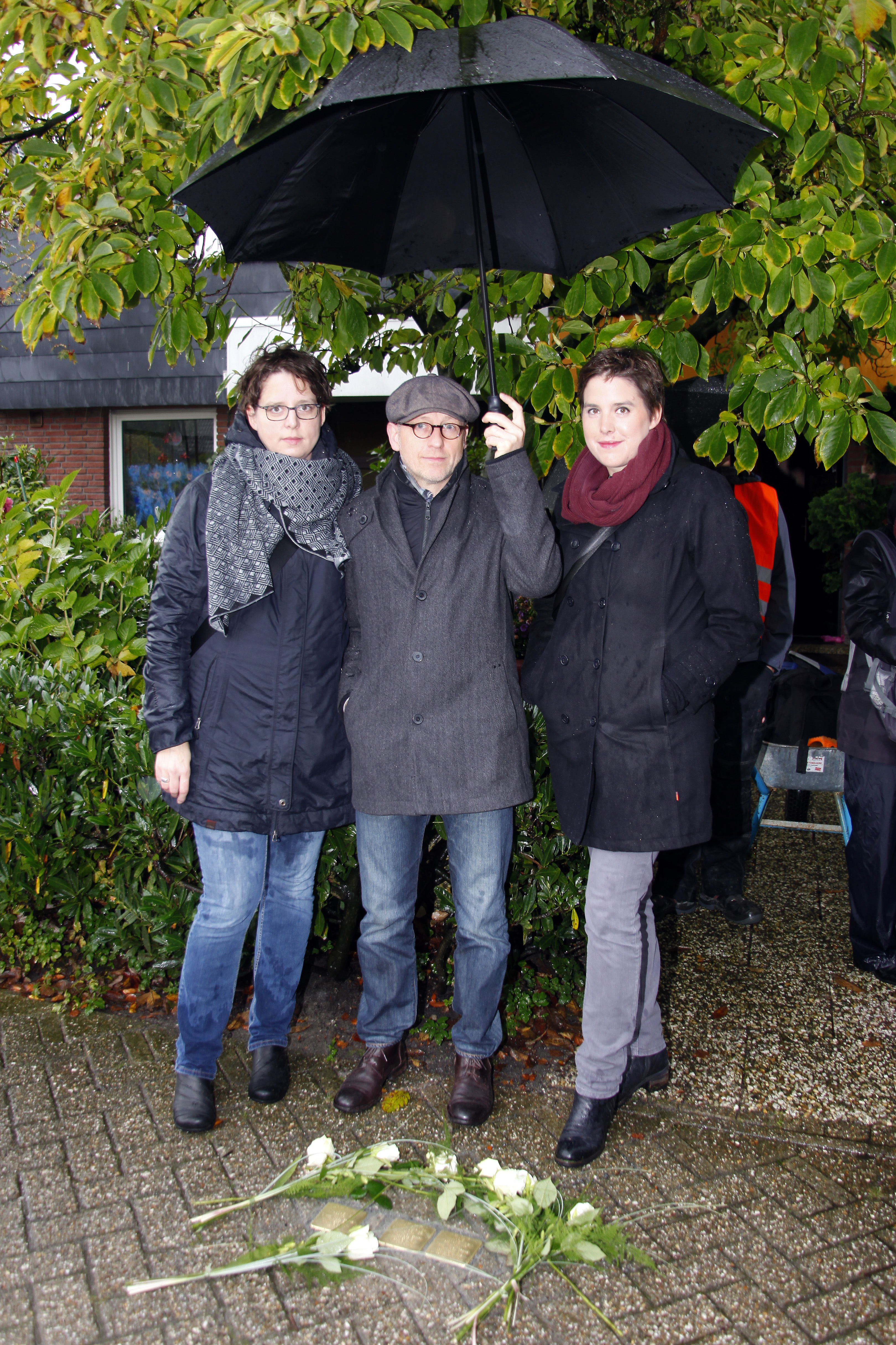 Auch diesmal konnten wir uns über die Anwesenheit von Verwandten der Opfer freuen. Nachkommen der Familie Jakob Moses Cohen waren extra für die Verlegung aus Israel bzw. Amsterdam angereist. So konnten wir aus Israel Chana Nahari (Tochter von Mia Cohen verh. Vos) mit ihrer Tochter Tal Nahari-Tenenbaum sowie Hanna (Tochter von David Cohen) und Dodo Vaknim mit Sohn Avishay und Tochter Ziv begrüßen. Aus Amsterdam kam Ranni Cohen, der Bruder von Hanna Vaknim. Die Besucher zeigten sich beeindruckt von der Intensität der Recherchearbeit und lobten immer wieder das Engagement aller Auricher Mitarbeiter an dem Stolpersteinprojekt.