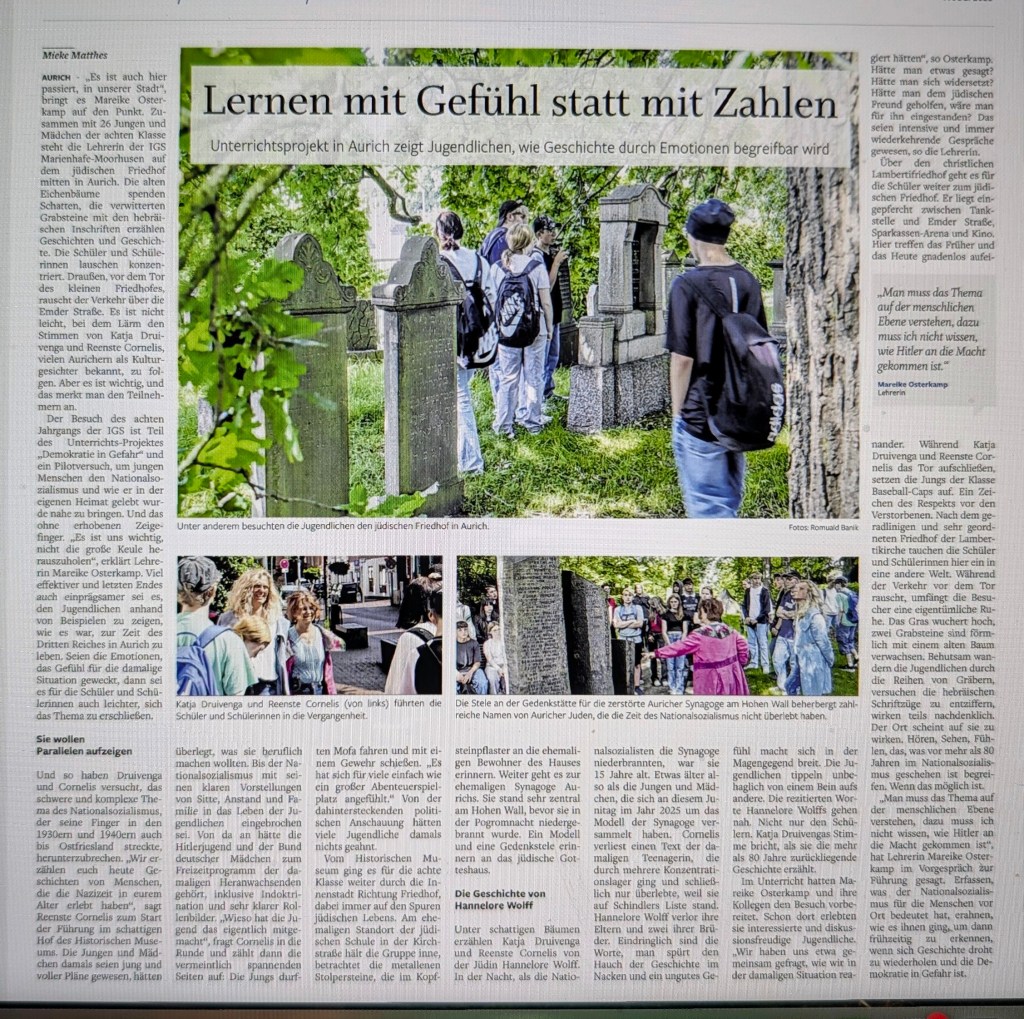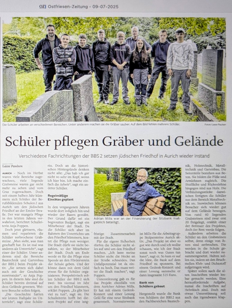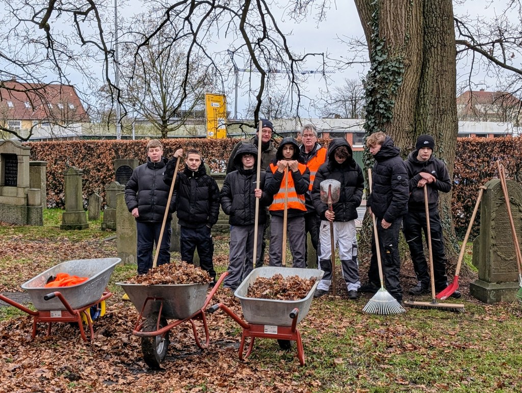 Am 15. Dezember 2025 wurde auf dem jüdischen Friedhof ein weiteres mal gearbeitet. Die Schüler der BBS II Aurich kümmerten sich zusammen mit den drei beteiligten Lehrkräften insbesondere, die Grabplatten von dem vielen Eichenlaub zu befreien.