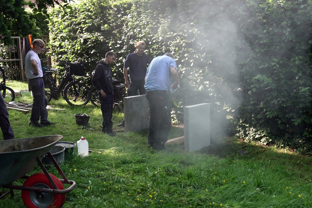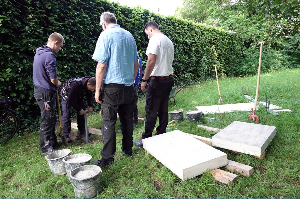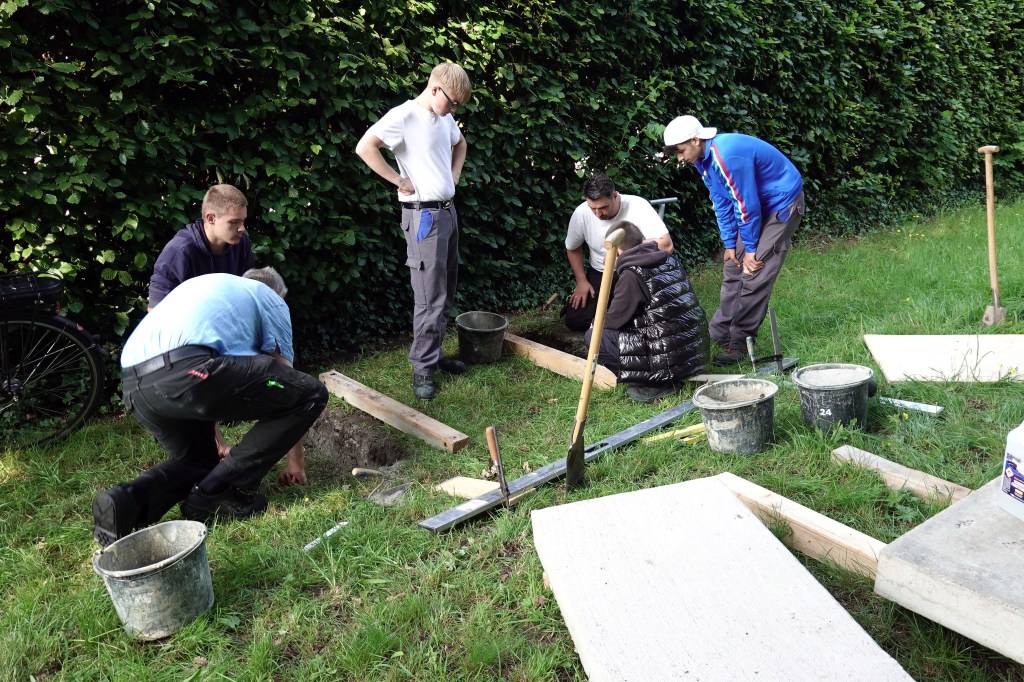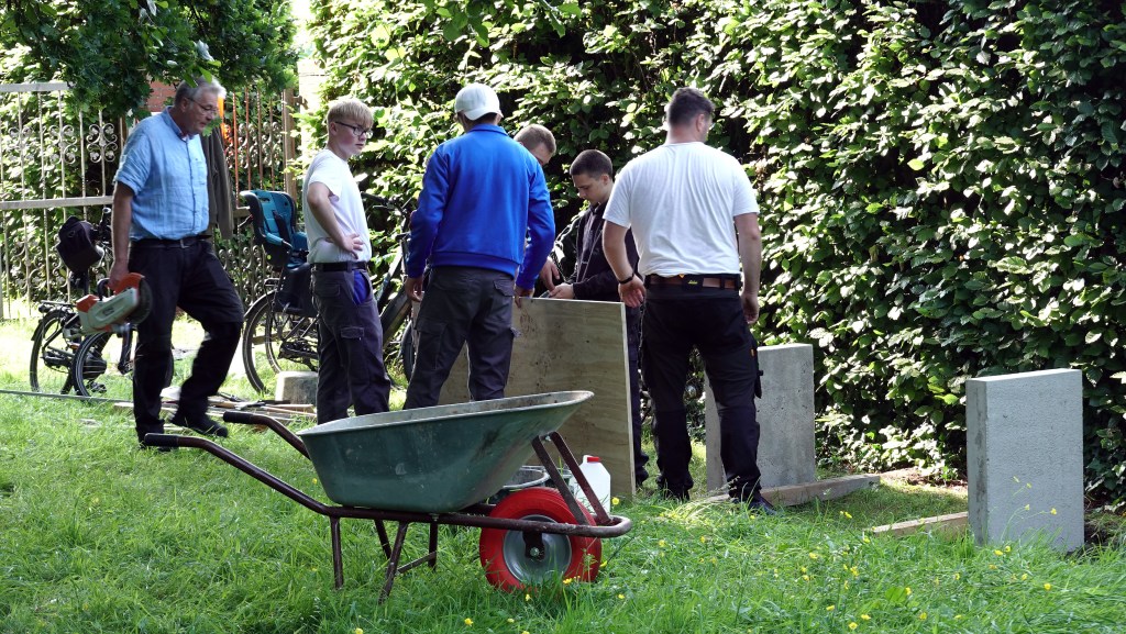 Am 18. Juni 2025 war es soweit, die neue Bank konnte aufgestellt werden. Sie wurde in Einzelteilen zerlegt von der Berufsbildenden Schule zum Friedhof gebracht und dort zusammengebaut.