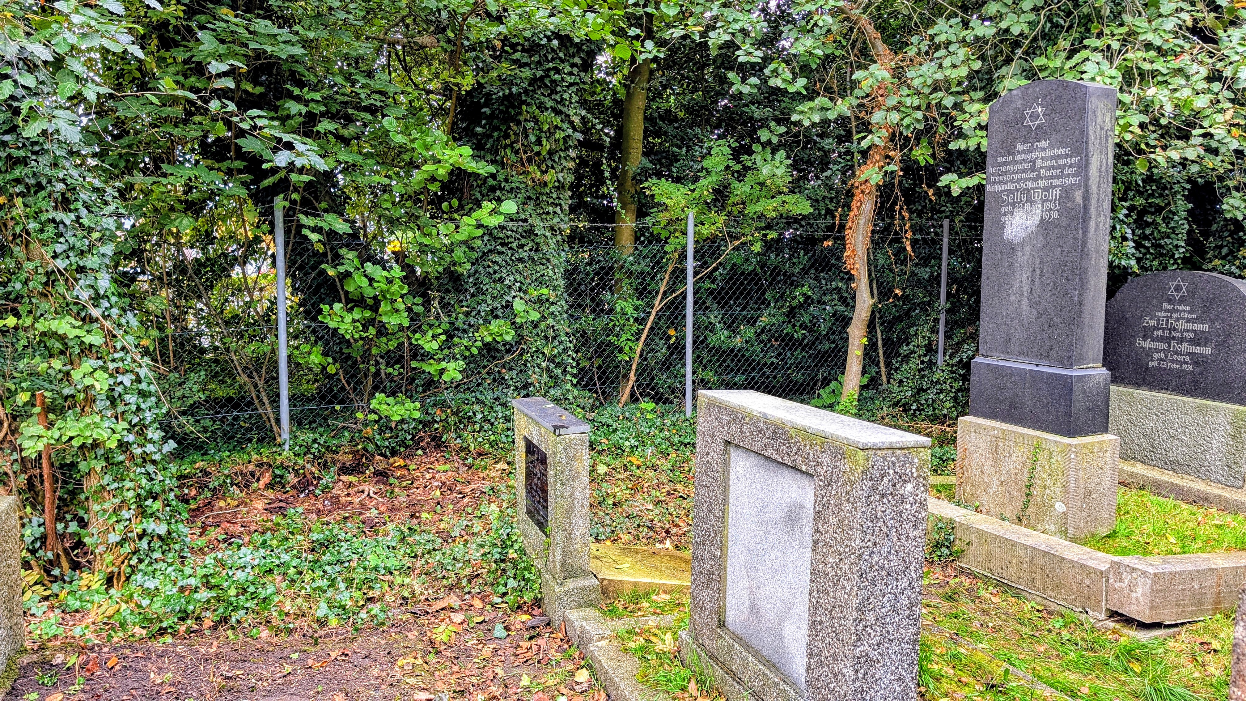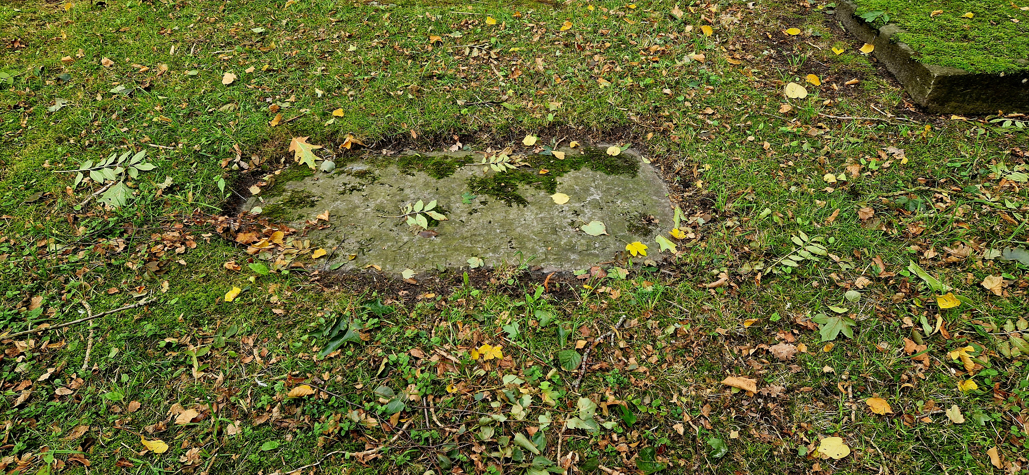 Viele Grabplatten auf dem alten Friedhofsteil waren im Laufe der Jahrzehnte total überwachsen von Moos und Gras. Ihre genaue Lage konnte man nur anhand der vorliegenden Verzeichnisse finden. Die Fotos entstanden am 2. Oktober 2024.