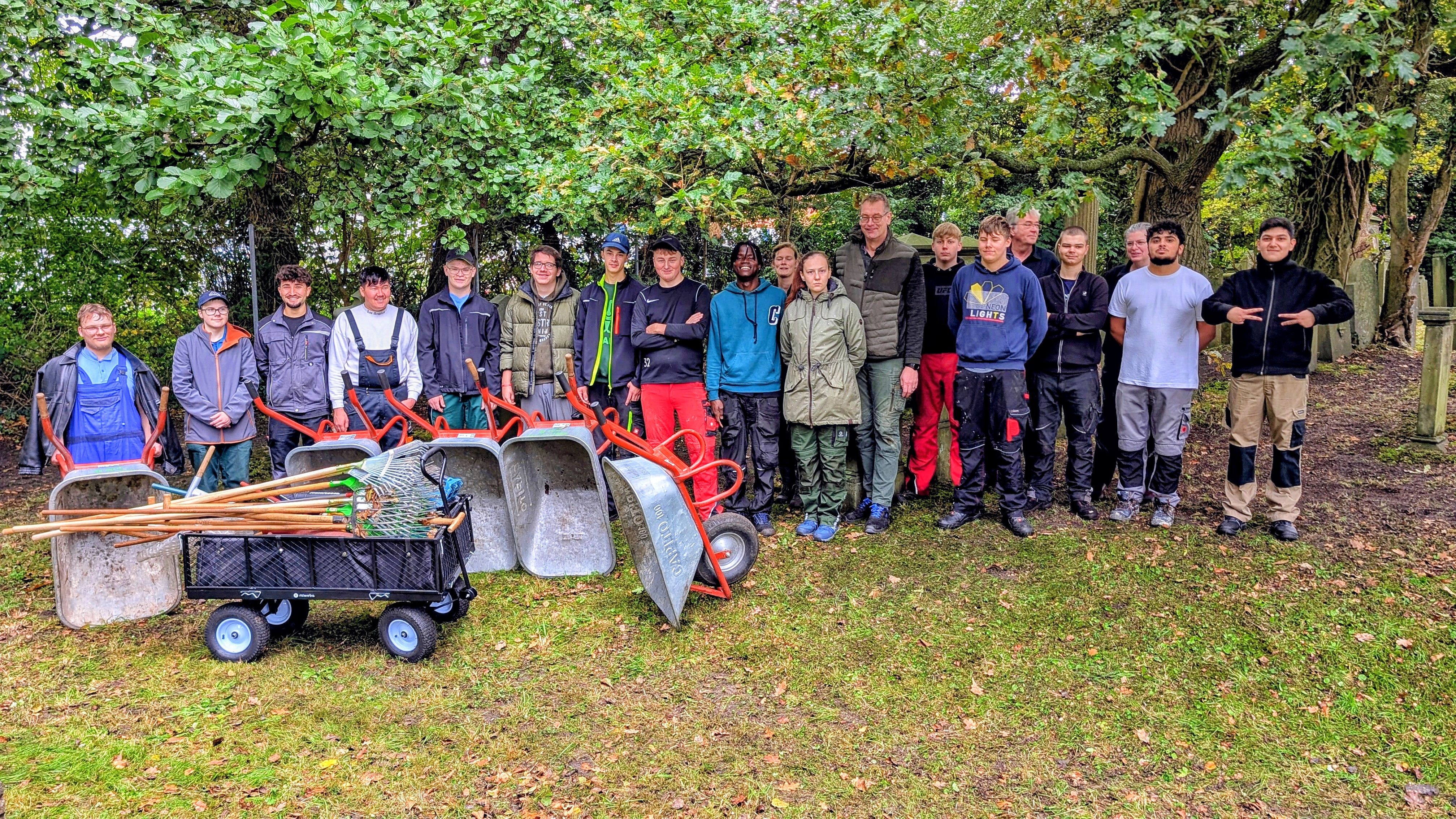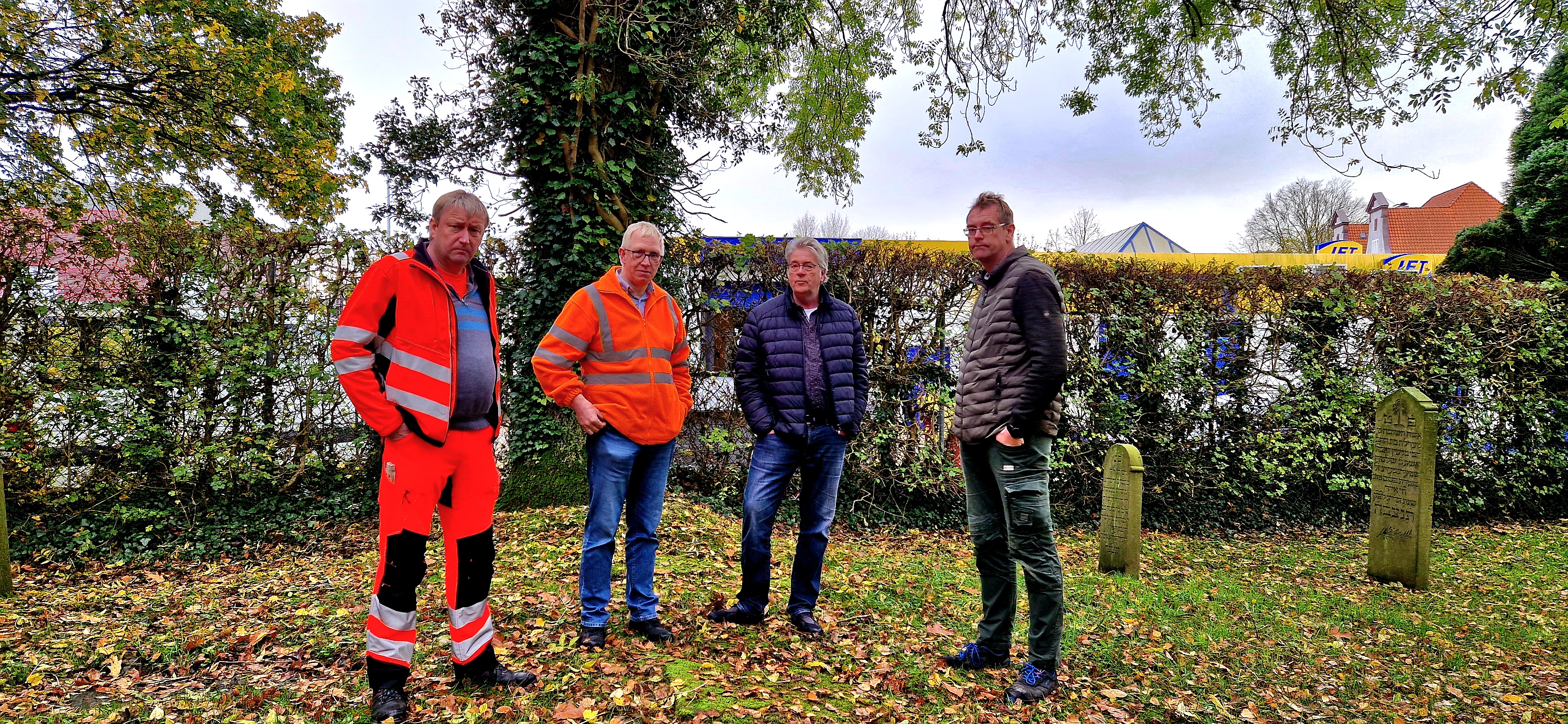 Am 30.Oktober 2024 trafen sich Mitarbeiter der Stadt Aurich und beteiligte Fachpraxislehrer auf dem Friedhof. Dabei entstanden die folgenden Fotos: