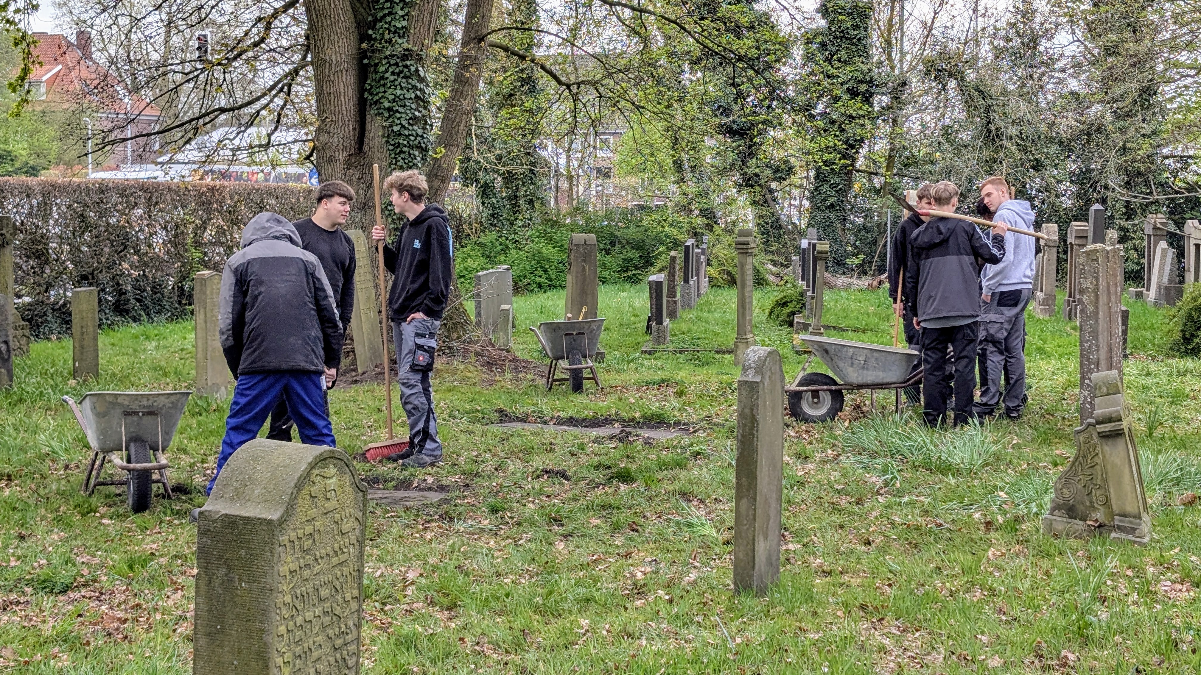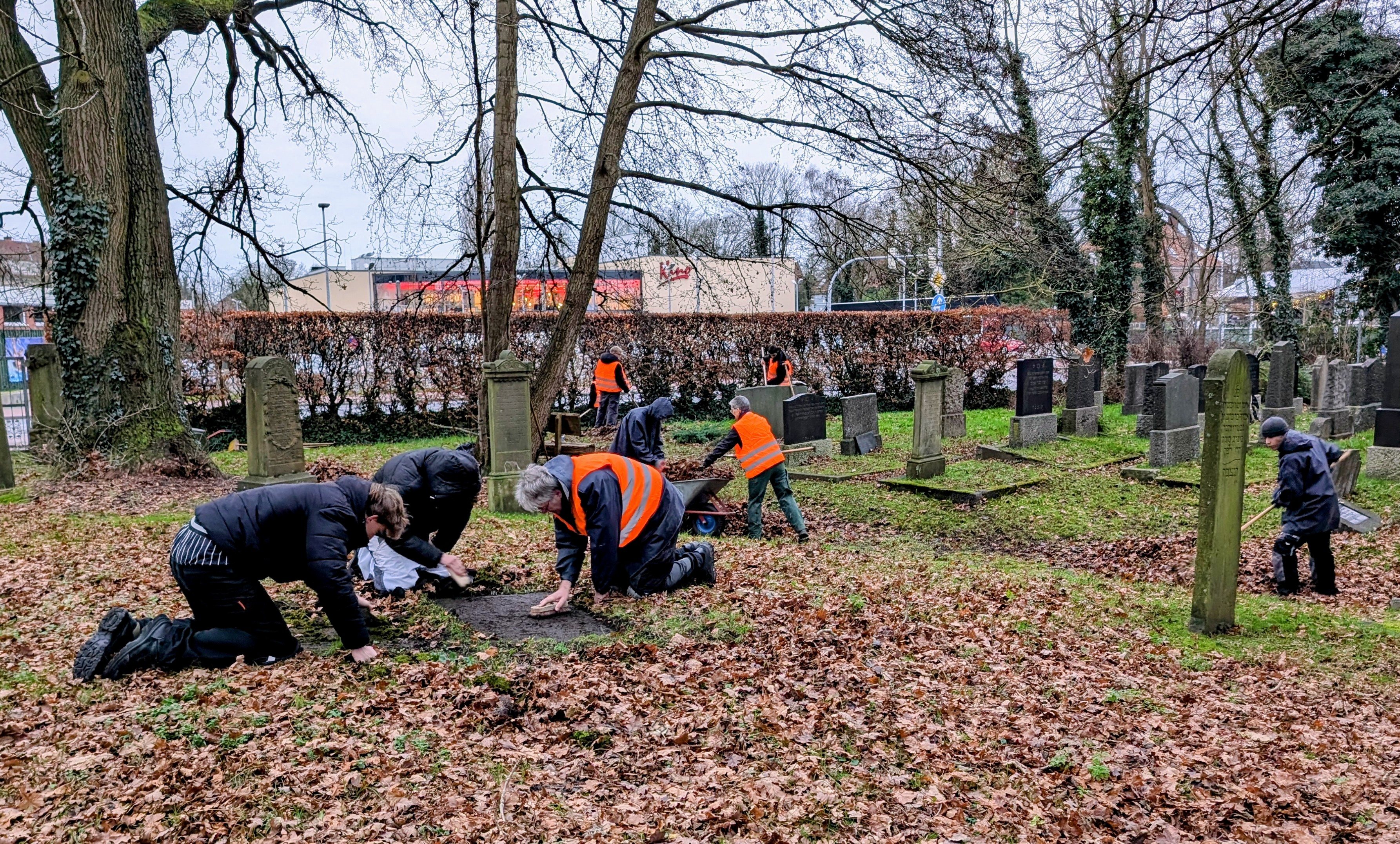 Am 15. Dezember 2025 wurde auf dem jüdischen Friedhof ein weiteres mal gearbeitet. Die Schüler der BBS II Aurich kümmerten sich zusammen mit den drei beteiligten Lehrkräften insbesondere, die Grabplatten von dem vielen Eichenlaub zu befreien.