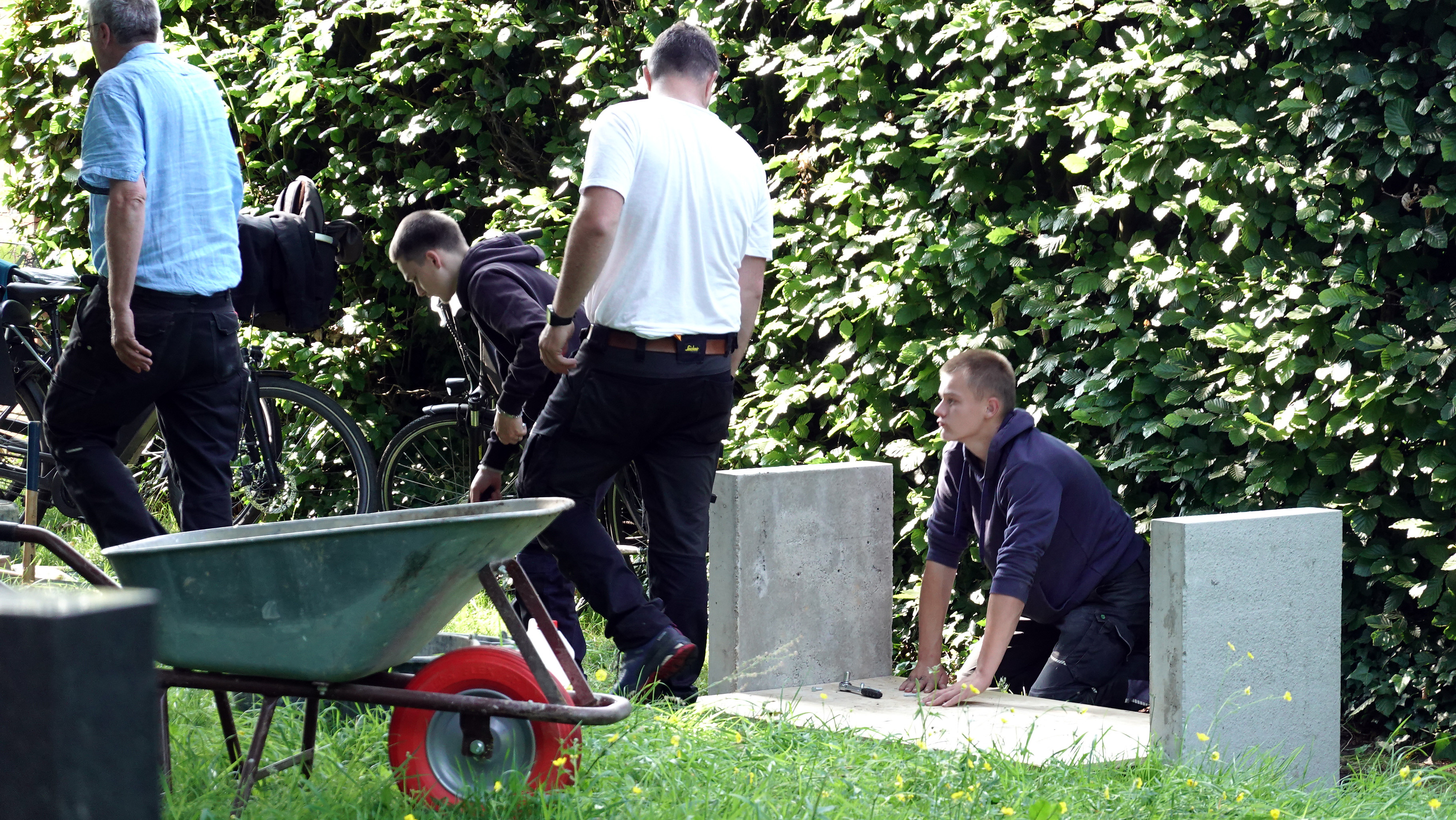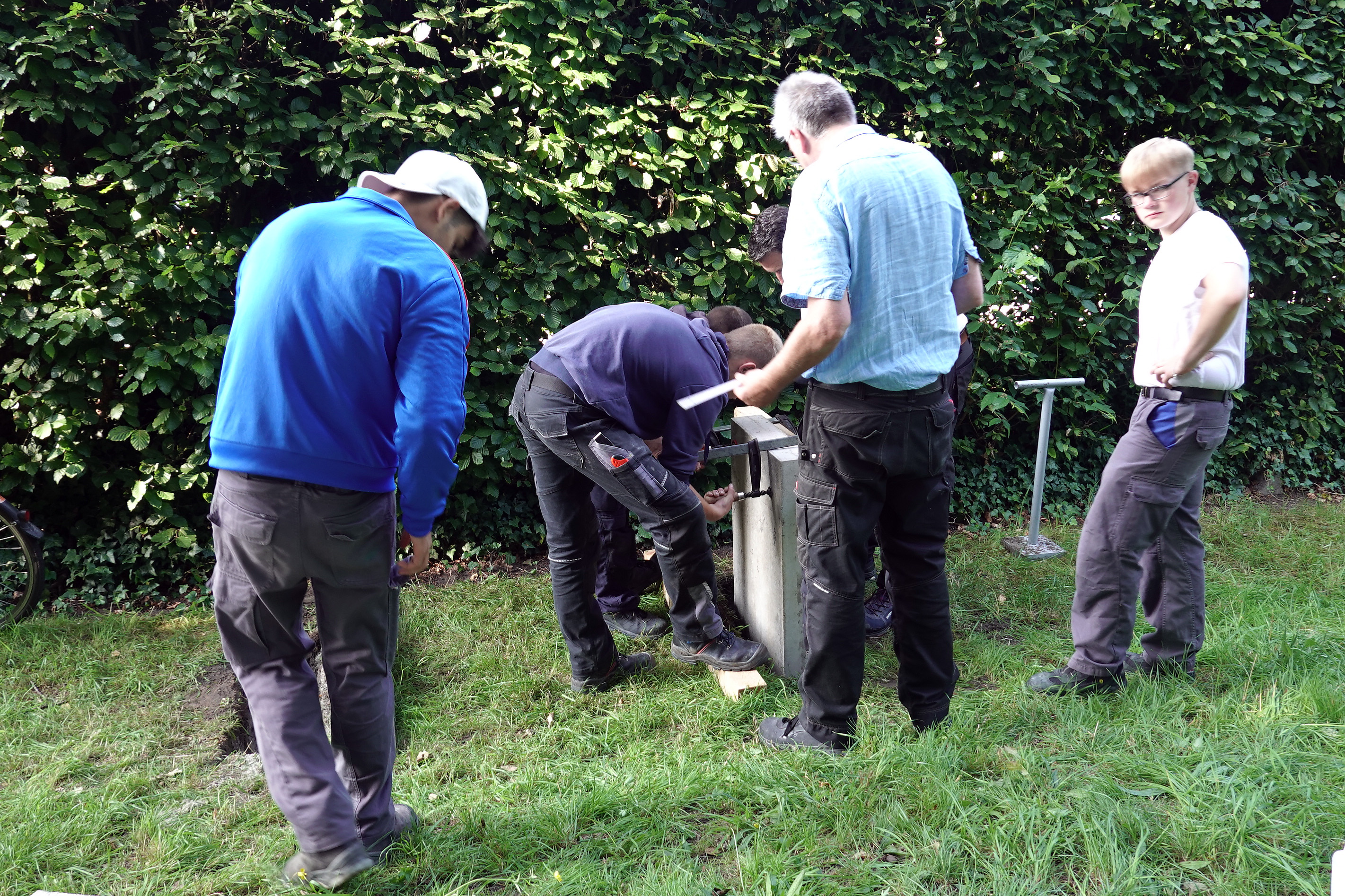 Am 18. Juni 2025 war es soweit, die neue Bank konnte aufgestellt werden. Sie wurde in Einzelteilen zerlegt von der Berufsbildenden Schule zum Friedhof gebracht und dort zusammengebaut.